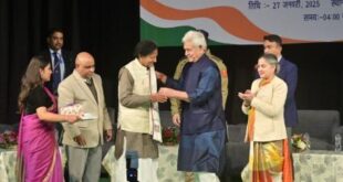 गाजीपुर। वरिष्ठ कवि,ख्यातिलब्ध मंच संचालक हरिनारायण हरीश जम्मू-कश्मीर कला संस्कृति एवं भाषा अकादमी द्वारा गणतंत्र दिवस के अवसर पर जम्मू में आयोजित अखिल भारतीय कवि सम्मेलन में काव्य-पाठ कर जनपद का गौरव बढ़ाया। जम्मू-कश्मीर के उपराज्यपाल मनोज सिन्हा ने उन्हें सम्मानित किया एवं शाल ओढ़ाकर उनका अभिनन्दन किया। साहित्य चेतना …