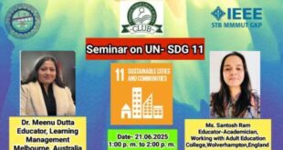 लखनऊ। मदन मोहन मालवीय प्रौद्योगिकी विश्व विद्यालय गोरखपुर में संयुक्त राष्ट्र के सतत विकास लक्ष्य (SDG) 11 – टिकाऊ शहर और समुदाय”पर आयोजित अंतरराष्ट्रीय सेमिनार में ऑस्ट्रेलिया के मेलबर्न से शिक्षाविद् डॉ. मीनू दत्ता और इंग्लैंड के वोल्वरहैम्पटन स्थित एडल्ट एजुकेशन कॉलेज से जुड़ी शिक्षाविद् संतोष राम ने बतौर मुख्य …