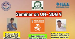 लखनऊ। मदन मोहन मालवीय यूनिवर्सिटी ऑफ टेक्नोलॉजी गोरखपुर में संयुक्त राष्ट्र सतत विकास लक्ष्य SDG 9 (उद्योग, नवाचार और अवसंरचना) तथा SDG 10 (असमानता में कमी) पर एक शैक्षिक सेमिनार का आयोजन किया गया। सेमिनार में प्रो. जीऊत सिंह (यांत्रिक विभाग एमएमयूटी ) ने बताया कि SDGs कुल 17 आपस …
