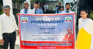 गाजीपुर। विश्वनाथ इंस्टिट्यूट ऑफ़ फ़ार्मेसी, रायपुर (ग़ाज़ीपुर) में विश्व फ़ार्मेसी दिवस बड़े उत्साह और हर्षोल्लास के साथ मनाया गया।कार्यक्रम की शुरुआत प्रभात फेरी से हुई, जिसमें छात्र-छात्राओं एवं स्टाफ़ ने बढ़-चढ़कर हिस्सा लिया और आसपास के क्षेत्रों में फ़ार्मेसी के महत्व व स्वास्थ्य जागरूकता का संदेश दिया।इसके पश्चात् कॉलेज प्रांगण …
