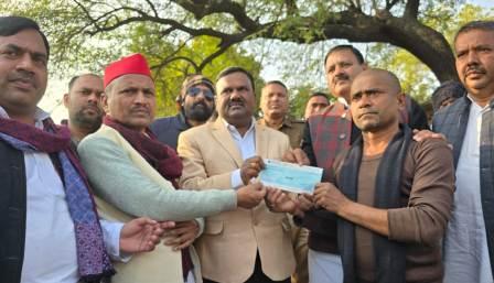 गाजीपुर। समाजवादी पार्टी के राष्ट्रीय अध्यक्ष अखिलेश यादव के निर्देश पर पार्टी का पांच सदस्यीय प्रतिनिधिमंडल बाबा साहेब अम्बेडकर वाहिनी के राष्ट्रीय अध्यक्ष मिठाई लाल भारती के नेतृत्व में विगत दिनों मारे गये बोगना निवासी जयकरन राम के घर पहुंचकर शोक सन्तप्त परिजनों से मिलकर अपनी शोक संवेदना जतायी तथा पार्टी की तरफ से एक लाख रुपए की आर्थिक मदद भी प्रदान किया। प्रतिनिधिमंडल ने शेष बचे हत्यारों को तत्काल गिरफ्तार करने की भी मांग किया तथा जल्द से जल्द गिरफ्तारी न होने पर आन्दोलन करने की भी चेतावनी दी। बाबा साहब अम्बेडकर वाहिनी के राष्ट्रीय अध्यक्ष मिठाई लाल भारती ने भाजपा सरकार को दलितों का दुश्मन बताते हुए कहा कि इस राज मे दलितों हत्या आम बात हो गयी है। उन्होंने प्रदेश की कानून वयव्स्था पर चिंता जताते हुए कहा कि पूरे प्रदेश मे जंगलराज कायम है। कानून व्यवस्था ध्वस्त है। प्रदेश मे कोई भी सुरक्षित नही है। आये दिन हत्या ,डकैती,लूट,छिनैती बलात्कार,की घटनायें हो रही है लेकिन सरकार के कान पर जू नही रेंग रही है। वह अपराध रोकने के बजाय अपने साम्प्रदायिक एजेंडो को मूर्त रूप देने मे व्यस्त है। उसका आम आदमी के सुख दुख से कुछ भी लेना देना नही है। वह केवल पूंजीपतियों की फिक्रमंद है। इस प्रतिनिधिमंडल मे मुख्य रूप से जिलाध्यक्ष गोपाल यादव, विधायक डॉ विरेन्द्र यादव, चन्द्रशेखर चौधरी,राजेन्द्र यादव ,रविन्द्र प्रताप यादव ,सुजीत कुमार, लल्लन राम, आलोक कुमार, शशिकांत भारती,जितेन्द्र भारती,जितेन्द्र चौहान, उज्जवल कुमार , रविप्रकाश संत,रामनारायण यादव, बृजेश सिंह,संतोष चौबे थे।