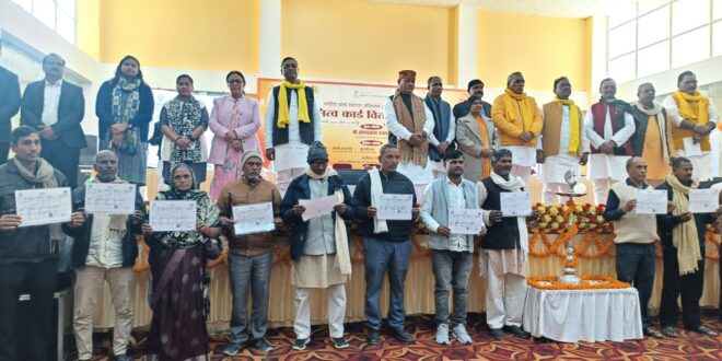गाजीपुर। स्वामित्व योजना अंतर्गत घरौनी वितरण कार्यक्रम जनपद स्तर पर ऑडिटोरियम सभागार निकट विकास भवन मे संपन्न हुआ। कार्यक्रम में सर्वप्रथम प्रधानमंत्री जी व मुख्यमंत्री जी की अध्यक्षता में आयोजित कार्यक्रम के लाइव प्रसारण को माननीय जनप्रतिनिधियों, जिलाधिकारी, घरौनी के लाभार्थियों एवं ग्रामीण जनों के द्वारा देखा एवं सुना गया। स्वामित्व योजना के तहत प्रधानमंत्री नरेंद्र मोदी जी द्वारा देश भर के लगभग 50 हजार गांव में 65 लाख प्रॉपर्टी कार्ड का डिजिटल वितरण किया गया। इसके अलावा इस योजना के लाभार्थियों के साथ उन्होंने सीधा संवाद भी किया। दिल्ली से प्रधानमेत्री एवं प्रदेश स्तर पर मुख्यमंत्री योगी जी द्वारा आयोजित इस कार्यक्रम का जनपद स्तर, तहसील स्तर एवं विकासखंड स्तर पर आयोजित कार्यक्रमों में सीधा सजीव प्रसारण किया गया। जनपद स्तर पर आयोजित कार्यक्रम का उद्घाटन मंत्री पंचायती राज तथा अल्पसंख्यक कल्याण, मुस्लिम वक्फ एवं हज विभाग उ0प्र0 ओम प्रकाश राजभर द्वारा ऑडिटोरियम सभागार मे दीप प्रज्वलन कर किया गया। जनपद में आयोजित कार्यक्रम के दौरान मुख्य अतिथि एवं विशिष्ट अतिथियो एंव अधिकारियो द्वारा जनपद के लाभार्थियों को स्वामित्व कार्ड का वितरण किया गया। इसके साथ ही तहसील एवं विकास खंडों पर भी प्रॉपर्टी कार्ड वितरण हेतु कार्यक्रमों का आयोजन किया गया। इन कार्यक्रमों के दौरान पूरे जनपद में लगभग 25000 प्रॉपर्टी कार्ड का वितरण किया गया। कार्यक्रम के दौरान अपने संबोधन में माननीय मंत्री जी ने इस योजना के लिए प्रधानमंत्री जी की तारीफ की। उन्होने कहा कि यह योजना गरीब कमजोर असहाय लोगो के हित के लिए है, इस योजना के माध्यम से लोगो का प्रॉपर्टी कार्ड बन जाने से जमीनी विवाद हल होने के साथ ही साथ बैंक से ऋण लेने में भी सुविधा मिलेगी तथा अनावश्यक कोर्ट कचहरी के भाग दौड़ से भी लोगों को निजात मिलेगी। कार्यक्रम के दौरान मा0 मंत्री जी ने स्वच्छता एंव नशामुक्ति पर उपस्थित लोगो को शपथ भी दिलाई। जिलाधिकारी आर्यका अखौरी ने अपना सम्बोधन व्यक्त करते हुए कहा कि मा0 प्रधानमंत्री जी की दूरदर्शी सोच स्वामित्व योजना का शुभारम्भ अप्रैल 2020 को हुआ था। इस योजना में ग्रामीण अंचल के लोग जो आबादी मे आवासित होते है उनको अपने सम्पत्ति का अधिकार मिल सके, यह एक क्रान्तिकारी कदम है। हमारे गॉववासियों को आत्म निर्भर करने, उनकी सम्पत्ति का अधिकार दिलाने तथा सम्पत्ति को सुरक्षित करने के लिए यह योजना चलाई गयी है। उन्होने कहा कि खेत की खतौनी के जैसे ही आबादी मे निवासित लोगो के घरो का मालिकाना हक दिलाने के लिए घरौनी का वितरण किया गया है। राज्य सभा सांसद संगीता बलवंत ने कहा कि कहा कि स्वामित्व योजना से जहां एक तरफ ग