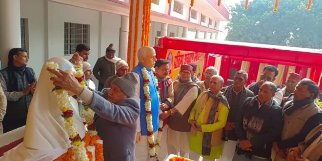 गाजीपुर। क्षेत्र के ग्राम पंचायत पाली में मां शारदा राज नारायण स्मारक महाविद्यालय एवं राजनारायण राय मेमोरियल इंटर कॉलेज के परिसर में रविवार को प्रतिमा अनावरण समारोह का आयोजन किया गया। जिसमें विद्यालय में स्थापित विद्यालय के संस्थापक स्व. श्रीप्रकाश राय एवं स्थापना की प्रेरणास्रोत उनकी मां स्व. शारदा देवी की प्रतिमाओं का अनावरण मुख्य अतिथि बाल्मीकि त्रिपाठी दर्जा प्राप्त राज्यमंत्री व पीसीएफ के चेयरमैन,पूर्व मंत्री नारद राय ,युवा भाजपा नेता पीयूष राय,विजय शंकर राय ने संयुक्त रूप से किया। वक्ताओं ने कहा कि ग्रामीण परिवेश में महाविद्यालय और इंटर कालेज जैसी संस्थाओं की स्थापना बड़ी सोच का नतीजा है। इन संस्थाओं का समाज,शिक्षा के विकास में महत्वपूर्ण योगदान होगा। श्री प्रकाश राय ने नौकरी करते हुए समाज,शिक्षा के लिए जो योगदान किया वह अविस्मरणीय रहेगा। यहां की अध्ययनरत छात्र-छात्राएं अपनी मेधा और शिक्षा से इसकी स्थापना का उद्देश्यपूर्ण करेंगी तो यही संस्थापक के प्रति सच्ची श्रद्धांजलि होगी। वक्ताओं ने कहा कि इन संस्थाओं के विकास में जो भी जरूरत होगी उसके लिए वह सदैव तैयार रहेंगे। इस मौके पर पीसीएफ चेयरमैन बाल्मीकि त्रिपाठी ,पूर्व मंत्री नारद राय, जिला अध्यक्ष भाजपा सुनील सिंह, जिला पंचायत अध्यक्ष मऊ मनोज राय, वरिष्ठ भाजपा नेता विजय शंकर राय, पूर्व जिलाध्यक्ष कृष्ण बिहारी राय, युवा भाजपा नेता पीयूष राय, वीरेंद्र कुमार राय, बलिया के गोपाल सिंह, अखिलानंद त्रिपाठी, राम नगीना यादव ,आनंद कुमार त्रिपाठी,अनुराग सिंह , यशवंत सिंह आदि ने संबोधित किया। समारोह में ओमप्रकाश राय, श्रीकांत वर्मा, अमित राय, उत्कर्ष राय, संतोष वर्मा, अमित राय, जितेंद्र पांडेय,इंद्रासन राय , संजय राजभर, रोहित राजभर, राम अवतार यादव, रामबचन यादव, अनिल पांडेय, संजीव वर्मा, रामभवन शर्मा आदि प्रमुख लोग मौजूद रहे। अध्यक्षता जय प्रकाश विश्वविद्यालय छपरा के पूर्व कुलपति प्रो. हरिकेश सिंह व संचालन अविनाश प्रधान ने किया। आगंतुकों के प्रति आभार प्रधानाचार्य शशिकांत राय ने ज्ञापित किया।