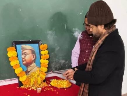गाजीपुर। सत्यदेव डिग्री कॉलेज के प्रांगण में नेताजी सुभाष चंद्र बोस की जन्म जयंती मनाई गई इस अवसर पर सत्यदेव ग्रुप आफ कॉलेज के सीएमडी प्रोफेसर आनंद सिंह और कोऑर्डिनेटर डॉ रामचंद्र दुबे तथा प्राचार्य डॉ रोहित सिंह ने सुभाष चंद्र बोस के चित्र पर माल्यार्पण कर पुष्पांजलि अर्पित की इस अवसर पर नेताजी के संदर्भ में बोलते हुए सीएमडी प्रोफेसर आनंद कुमार सिंह ने बच्चों से कहा की नेताजी कि यह जयंती हम उनके 125 वे जयंती के समय से ही पराक्रम दिवस के रूप में मनाते आ रहे हैं यह उनकी 128वीं जन्म जयंती है इस अवसर पर उनको याद करते हुए हम भावभीनी श्रद्धांजलि अर्पित करते हैं नेताजी ने गांधी जी से अलग स्वतंत्रता संघर्ष के लिए नीति और रीति अपनाई ।उन्होंने अंग्रेजों से लड़ने के लिए स्व पराक्रम का उपयोग किया इसके लिए उन्होंने आजाद हिंद फौज नाम की एक सेना का गठन किया और अंग्रेजों के विरुद्ध लड़ाइयां लड़ी 21 अक्टूबर 1943 को सुभाष चंद्र बोस ने आजाद हिंद फौज के सर्वोच्च सेनापति की हैसियत से स्वतंत्र भारत की अस्थाई सरकार बनाई। जिसे जर्मनी जापान फिलीपींस कोरिया चीन इटली मंचूको और आयरलैंडसहित 11 देशों ने मान्यता भी प्रदान की जापान ने अंडमान और निकोबार दीप समूह इस अस्थाई सरकार को दे दिया सुभाष इन द्वीपों में गए और उनका नया नामकरण किया। हम आजादी की लड़ाई में नेता जी सुभाष चंद्र बोस के योगदान को भुला नहीं सकते। इस अवसर पर बच्चों ने भी अपने उदगार व्यक्त किए।सभा का संचालन राजनीति शास्त्र के प्रवक्ता कमलेश ने किया। अंत में सत्यदेव डिग्री कालेज के प्राचार्य डॉ. रोहित कुमार सिंह ने धन्यवाद ज्ञापन किया। सभा में यूजी पीजी के छात्र छात्राओं के साथ उनके विद्वान आचार्य गण भी उपस्थित थे।