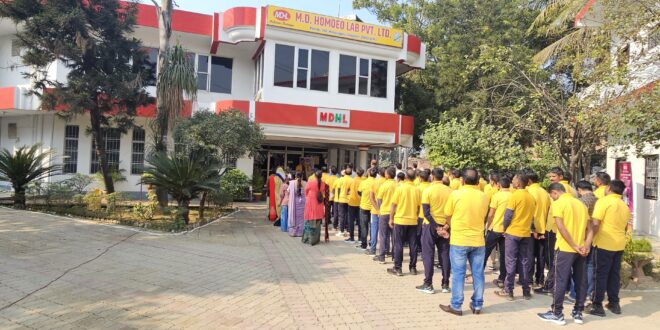गाजीपुर। 26 जनवरी 76वें गणतंत्र दिवस के शुभ अवसर पर एम०डी० होमियो लैब प्रा०लि०, महाराजगंज, गाजीपुर के प्रांगण में MD Group of Companies के चेयरमैन डॉ० एम०डी० सिंह जी ने ध्वजारोहण किया तथा अपने ओजस्वी कविता के द्वारा अपने सहयोगियों का उत्साहवर्धन किया। उक्त अवसर पर कम्पनी के निदेशक डॉ० विजेन्द्र प्रताप सिंह एवं कम्पनी की कर्मचारी गजाला परवीन बेटी जोया अफजल ने कविता पाठ कर लोगों को मंत्रमुग्ध कर दिया। इस अवसर पर कम्पनी के प्रबंधन मण्डल ने राष्ट्रपिता महात्मा गाँधी एवं कम्पनी के संरक्षक स्व० खूबलाल सिंह जी को पुष्पांजली अर्पित की। समारोह में निदेशक जितेन्द्र सिंह, प्रबंधक भाष्कर पाण्डेय एवं फारूख इदरीशी ने अपने विचार व्यक्त किए। कार्यक्रम में समस्त कर्मवारियों, वितरकों एवं अतिथिगण ने हर्षोल्लास के साथ भाग लिया। इस अवसर पर कम्पनी के स्टॉफ सुधीर राय, जानेसार, अख्तर, सुरेश विश्वकर्मा, योगेश यादव एवं शान्ति यादव सहित अन्य गणमान्य उपस्थित रहे। कार्यक्रम के पश्चात लोगों को जलपान कराया गया।