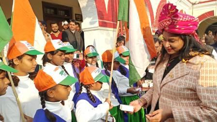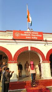 गाजीपुर। कलेक्ट्रेट गाजीपुर में 76वां गणतन्त्र दिवस हर्षोल्लास के साथ मनाया गया। कार्यक्रम के मुख्य अतिथि जिलाधिकारी आर्यका अखौरी ने ध्वजारोहण किया तथा उपस्थित सभी को एकता और अखंडता की शपथ दिलायी। इसके उपरान्त स्कूली बच्चों को मिष्ठान का वितरण किया गया तथा स्वतन्त्रता संग्राम सेनानियों के आश्रितो को अंगवस्त्रम व मिष्ठान देकर सम्मानित किया गया। जिलाधिकारी आर्यका अखौरी ने गणतंत्र दिवस की हार्दिक शुभकामनाएं देते हुए बधाई दी तथा कलेक्ट्रेट सभागार में जनपद के स्वतंत्रता संग्राम सेनानियो/आश्रितो को माला के साथ अंगवत्र एवं मिष्ठान देकर सम्मानित किया। कार्यक्रम के दौरान जिलाधिकारी ने गणतंत्र दिवस के अवसर पर देश के महान विभूतियों एवं स्वतंत्रता संग्राम सेनानियो के जीवन चरित्र पर प्रकाश डालते हुए विस्तृत रूप जानकारी दी। गणतंत्र दिवस समारोह मे अपर जिलाधिकारी वि0रा0 दिनेश कुमार, डिप्टी कलेक्ट्रर सालिक राम, डिप्टी कलेक्ट्रर/प्रभारी जिला कार्यक्रम अधिकारी ज्योति चौरसिया एवं अन्य जिला स्तरीय अधिकारी, कलेक्ट्रेट के कर्मचारीगण उपस्थित थे। तत्पश्चात जिलाधिकारी ने पुलिस लाईन पहुची जहां पुलिस अधीक्षक डा0 ईरज राजा ने उनका स्वागत किया। गणतंत्र दिवस के अवसर पर पुलिस लाईन मैदान में मुख्य अतिथि पंचायती राज्य मंत्री तथा अल्पसंख्यक कल्याण, मुस्लिम वक्फ एवं हज विभाग, उत्तर प्रदेश सरकार ओम प्रकाश राजभर ने सर्किट हाउस गाजीपुर से प्रस्थान कर रिजर्व पुलिस लाईन ग्राउण्ड में पहुचे वहा पुलिस अधीक्षक ने उनका स्वागत किया उसके उपरान्त मंत्री जी ने झंडा फहराया तथा पुलिस लाइन में परेड की सलामी ली। परेड में शामिल विभिन्न टोलियों द्वारा मुख्य मंच से गुजरते हुए मुख्य अतिथि महोदय को सलामी दी गई। मुख्य अतिथि ने परेड को कमान्ड कर रहे प्रथम, द्वितीय व सभी टोली के कमान्डर से परिचय प्राप्त किया गया। मंत्री जी ने समस्त जनपदवासीयों को गणतन्त्र दिवस की हार्दिक शुभकामनाएं देते हुए कहा कि गणतन्त्र दिवस धुम -धाम से मनाया जा रहा है। हम उन वीर सपूतों को नमन करते है जिन्होने अपने प्राणों की आहूती देकर हमें आजादी दिलायी जिसके वजह से हम गणतन्त्र दिवस मना रहें है। उन्होने कहा कि आज से लगभग 75 वर्ष पहले 1950 में संविधान लागू हुआ था। आज से 50 वर्ष पहले गॉवों में शिक्षा का स्तर नगण्य था और आज कोई भी ऐसा गॉव नहीं है जहॉ की बेटीयां एवं बच्चे उच्च शिक्षा प्राप्त कर देश का नाम रोशन कर रहें है, ये संविधान की देन है। आज किसी भी क्षेत्र के लोग चाहे सीमा की सुरक्षा में लगे सैनिक, पुलिस, पत्रकार, किसान, नौजवान एवं अन्य क्षेत्रों में लोग भारतीय संविधान के तहत ही प्रगति के पथ पर अग्रसर है। इसके उपरान्त मुख्य अतिथि द्वारा सर
