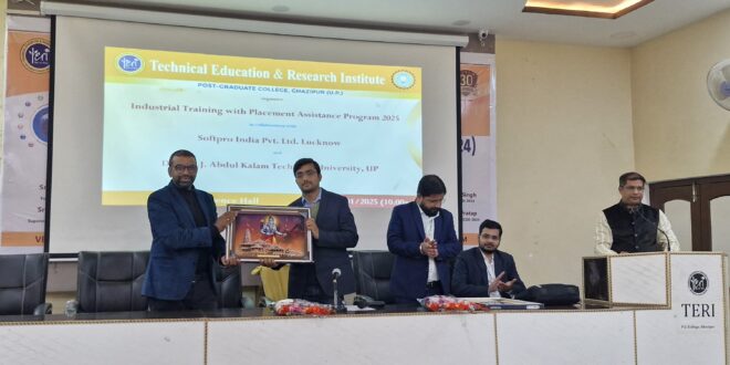 गाजीपुर। तकनीकी शिक्षा एवं शोध संस्थान पीजी कालेज ग़ाज़ीपुर के सभागार में “इंडस्ट्रियल ट्रेनिंग और प्लेसमेंट असिस्टेंट प्रोग्राम-2025” का आयोजन डॉ एपीजे अब्दुल कलाम प्राविधिक विश्वविद्यालय, उ०प्र०, लखनऊ और सॉफ्टप्रो इंडिया प्राइवेट लिमिटेड, लखनऊ द्वारा आयोजित किया गया| कार्यक्रम में संस्थान के एमसीए एवं बीसीए के छात्रों ने भाग लिया जिसमें एक “फुल स्टैक डेवलपर” बनने की एक कार्यशाला भी आयोजित की गयी| कार्यक्रम का मुख्य उद्देश्य छात्रों के प्रोग्रामिंग और तकनीकी ज्ञान को बढ़ावा प्रदान करना था जिससे उन्हें प्लेसमेंट में प्रतिभाग करने में आसानी हो और वो सफल हो सकें| कार्यक्रम का शुभारम्भ डा० हरेन्द्र सिंह, असिस्टेंट प्रोफेसर, पी० जी० कॉलेज, गाजीपुर एवं रोहित कुमार, मुख्य तकनीकी अधिकारी, सॉफ्टप्रो इंडिया प्राइवेट लिमिटेड, लखनऊ द्वारा बाबू राजेश्वर प्रसाद सिंह की प्रतिमा पर माल्यार्पण और माँ सरस्वती की प्रतिमा पर दीप प्रज्ज्वलन के साथ हुआ| कार्यक्रम के मुख्य अतिथि डा० हरेन्द्र सिंह, असिस्टेंट प्रोफेसर, पी० जी० कॉलेज, गाजीपुर जिनका नाम विश्व के टॉप 2 प्रतिशत गणितज्ञों में सम्मिलित हैं, उन्होंने बताया की छात्र रिसर्च पेपर लिखते हुए अपनी प्रोग्रामिंग स्किल को बढ़ाएं क्योकि हर क्षेत्र में कंप्यूटर तकनीकी का समावेश आवश्यक हो चुका है। रोहित कुमार, मुख्य तकनीकी अधिकारी, सॉफ्टप्रो इंडिया प्राइवेट लिमिटेड, लखनऊ ने छात्रों को कार्यशाला में “फुल स्टैक डेवलपर” एवं “इंडस्ट्रियल ट्रेनिंग एंड प्लेसमेंट” को विस्तार से बताया और एमसीए अंतिम वर्ष के छात्रों की लिखित परीक्षा लेकर उनके ट्रेनिंग एवं प्लेसमेंट प्रक्रिया को विश्विद्यालय मानकों के अनुसार संपन्न किया| संस्थान के प्रबंधक अजीत कुमार सिंह, अपर महाधिवक्ता, उ०प्र० के प्रयासों और निर्देशन में आत्मनिर्भर भारत अभियान को सफल बनाकर संस्थान और जनपद के छात्रों-युवाओं को प्रोग्रामिंग क्षेत्र में शिक्षित एवं प्रेरित कर उद्यमिता से समृद्धि युक्त स्वावलंबी राष्ट्र निर्माण हेतु कार्यक्रम का संयोजन किया गया| सहायक निदेशक डा० अजीत प्रताप सिंह ने बताया की रोजगार एवं स्टार्टअप के क्षेत्र में इस प्रकार के आयोजन छात्रों हेतु लाभदायी होते हैं| उन्होंने टेक्निकल यूनिवर्सिटी उ०प्र० और सॉफ्टप्रो इंडिया प्राइवेट लिमिटेड, लखनऊ का जनपद में आकर प्रशिक्षण प्रदान करने हेतु आभार प्रकट किया। कार्यक्रम का संयोजन और संचालन डा० अमित प्रताप के द्वारा किया गया| कार्यक्रम में डा० नीतू सिंह, डा०अजातशत्रु सिंह, डा० अभिषेक सिंह, सुभाष चन्द्र आदि उपस्थित रहे| इस कार्यक्रम से छात्रों में काफी हर्ष और उत्साह का माहौल बना हुआ था और सभी छात्र-छ
