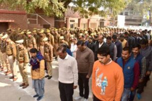 गाजीपुर। पुलिस अधीक्षक गाजीपुर द्वारा पुलिस के जवानों की उपस्थिति में पुलिस अधीक्षक कार्यालय पर भारत के स्वतंत्रता संग्राम में अपने प्राणों की आहूति देने वाले वीर शहीदो की स्मृति में 02 मिनट का मौंन धारण कर उन्हें श्रद्धांजलि दी गयी। इस अवसर पर अपर पुलिस अधीक्षक ग्रामीण एवं अन्य अधि0/कर्मचारीगण मौजूद रहे।
