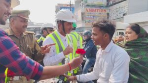 गाजीपुर। विद्युत वितरण निगम लिमिटेड की कार्यदायी संस्था मोंटी कार्लो कंपनी की तरफ से शुक्रवार को 36 वें राष्ट्रीय सड़क सुरक्षा माह के तहत गाजीपुर तिराहा बलिया मार्ग पर स्थित रौजा क्षेत्र में जागरूकता अभियान चलाया गया। इस दौरान आमजन को जीवन रक्षा का मंत्र दिया गया। ट्रैफिक पुलिस के अधिकारियों ने कहा कि सड़को पर चलते समय नियमों का पालन करना चाहिए।जब आप घर से निकलते है और सड़कों पर चलते हैं तो इस बात का ध्यान रखना चाहिए कि परिवार आपको सुरक्षित लौटने का इंतजार कर रहे हैं। वही आपसे थोड़ी से असावधानी परिवार को संकट में डाल सकता है। इसलिए सुरक्षित चले।खुद भी सुरक्षित रहे और परिवार को भी खुशहाल रखें। कंपनी के प्रोजेक्ट मैनेजर अनिल श्रीवास्तव एवं सहायक सुरक्षा अधिकारी कुलदीप कुमार मिश्रा के नेतृत्व में चलाए गए अभियान के दौरान जनता को सुरक्षा नियमों की जानकारी देते हुवे जागरूक किया गया। ट्रैफिक पुलिस अधिकारी मनीष त्रिपाठी ने यातायात नियमों के बारे में जानकारी दी। वही वर्क्स मैनेजर धर्मेंदु श्रीवास्तव व सीनियर इंजीनियर हरेंद्र सिंह, किसानू कविराज ने सड़क पर सड़क सुरक्षा का मूल मंत्र के साथ ट्रैफिक नियमों के पालन की अपील की। इन लोगो ने कहा कि सड़क पर गाड़ी चलाते समय खुद के साथ हो अपने परिवार की सुरक्षा के प्रति जागरूक रहना चाहिए।इस दौरान कंपनी के राकेश सिंह,नीरज उपाध्याय, रानू बुंदेला,आनंद पांडेय,अमन कुमार,शुभम तिवारी, नज़फ अब्बास,आशीष पांडेय,सौरभ श्रीवास्तव एवं ट्रैफिक पुलिस के समस्त अधिकारी एवं कर्मचारी के साथ ही साथ आमजन उपस्थित रहे।