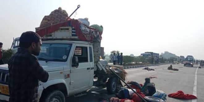 गाजीपुर। भीषण सड़क दुर्घटना में प्रयागराज महाकुंभ से स्नान करके वापस घर जा रहे 8 श्रद्धालुओं की मौत हो गयी और करीब आधा दर्जन से उपर घायल हो गये। प्राप्त जानकारी के अनुसार प्रयागराज महाकुंभ में स्नान करके पिकअप से बांसगांव गोरखपुर निवासी करीब 20 श्रद्धालु वापस घर जा रहे थे। नंदगंज थाना क्षेत्र अंतर्गत कुसुम्हीं के पास रेवसा गांव के पास अनियंत्रित ट्रेलर से पिकअप की बॉडी फंस गयी जिससे भीषण दुर्घटना घट गया। ट्रेलर 8 श्रद्धालुओं को रौंदते हुए निकल गया और करीब एक दर्जन से उपर श्रद्धालु घायल हो गये। घटना की खबर लगते ही मौके पर पुलिस अधीक्षक ईरज राजा, सहित कई थानों की पुलिस पहुंच गयी, घायलों को तत्काल चिकित्सा के लिए गाजीपुर मेडिकल कालेज ले जाया गया। पुलिस शवों को कब्जे में ले लिया है। पुलिस अधीक्षक ने बताया कि सड़क दुर्घटना में आठ श्रद्धालुओं की मौत हो गयी है राहत कार्य जारी है। दुर्घटना की खबर मिलते ही भाजपा जिलाध्यक्ष सुनील सिंह अपने कार्यकर्ताओं के साथ गाजीपुर मेडिकल कालेज में पहुंच कर राहत कार्यों का जायजा लिया।