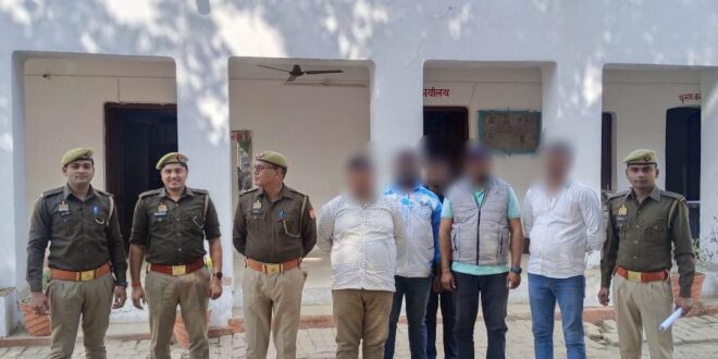 गाजीपुर। थाना बिरनो पुलिस टीम द्वारा मु0अ0सं0 17/2025 धारा 191(2),352,351(3),308(5) बीएनएस से सम्बन्धित वांछित 05 नफर अभियुक्तगण को किया गया गिरफ्तार। अपराध एवं अपराधियों के विरुद्ध चलाये जा रहे अभियान के तहत उ0नि0 भगवती सिंह थाना बिरनों मय हमराह द्वारा थाना स्थानीय पर पंजीकृत मु0अ0सं0 17/25 धारा 191(2),352,351(3),308(5) बीएनएस से सम्बन्धित वांछित अभियुक्तगण 1.संजय मिश्रा उर्फ झब्बू बाबा पुत्र लल्लन मिश्रा निवासी पिपनार थाना मरदह जनपद गाजीपुर 2.अजय यादव पुत्र स्व0 रामकुवर यादव निवासी मीठापार थाना जंगीपुर जनपद गाजीपुर 3.पवन यादव पुत्र नगीना यादव निवासी मीठापार थाना जंगीपुर जनपद गाजीपुर 4.रविन्द्र यादव पुत्र सीरिश यादव निवासी बिरनो थाना बिरनो जनपद गाजीपुर 5.बिरेन्द्र यादव पुत्र मुन्नीलाल यादव नि0 मिर्जापुर क्यामपुर थाना बिरनो जनपद गाजीपुर को टोल प्लाजा मिर्जापुर क्यामपुर थाना बिरनो जनपद गाजीपुर से गिरफ्तार किया गया । गिरफ्तारशुदा अभियुक्तगण के विरुद्ध अग्रिम विधिक कार्यवाही की जा रही है । गिरफ्तार अभियुक्तगण का नाम व पताः-1 .संजय मिश्रा उर्फ झब्बू बाबा पुत्र लल्लन मिश्रा निवासी पिपनार थाना मरदह जनपद गाजीपुर ,2. अजय यादव पुत्र स्व0 रामकुवर यादव निवासी मीठापार थाना जंगीपुर जनपद गाजीपुर,3. पवन यादव पुत्र नगीना यादव निवासी मीठापार थाना जंगीपुर जनपद गाजीपुर ,4. रविन्द्र यादव पुत्र सीरिश यादव निवासी बिरनो थाना बिरनो जनपद गाजीपुर,5. बिरेन्द्र यादव पुत्र मुन्नीलाल यादव नि0 मिर्जापुर क्यामपुर थाना बिरनो जनपद गाजीपुर।