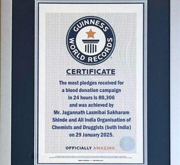 गाजीपुर। ऑल इंडिया ऑर्गनाइजेशन ऑफ केमिस्ट्स एंड ड्रगिस्ट्स (AIOCD) ने 24 घंटे में सबसे अधिक रक्तदान की शपथ लेकर गिनीज वर्ल्ड रिकॉर्ड में 80,306 शपथ-पत्र प्राप्त करके और लगभग 60000 से अधिक रक्तदान करके, एक नया रिकॉर्ड बनाया है। यह उपलब्धि पूरे भारत में थैलेसीमिया रोगियों, वंचित गर्भवती महिलाओं और कुपोषित बच्चों के लिए सहायक सिद्ध होगी। यह पुरस्कार गिनीज वर्ल्ड रिकॉर्ड की टीम द्वारा महाराष्ट्र के उपमुख्यमंत्री श्री एकनाथ शिंदे की उपस्थिति में AIOCD की स्वर्ण जयंती और AIOCD के अध्यक्ष जे.एस. शिंदे के 75वें जन्मदिन के अवसर पर प्रदान किया गया। देश भर में 12.40 लाख केमिस्ट और फार्मासिस्टों का प्रतिनिधित्व करते हुए, एआईओसीडी आयुष्मान भारत और पोषण अभियान जैसे राष्ट्रीय कार्यक्रमों के साथ जुड़कर स्वास्थ्य सेवा के प्रति अपनी प्रतिवद्धता को कायम रखें हुए है। जेएस शिंदे अध्यक्ष और राजीव सिंघल महासचिव ने बताया कि यह उपलब्धि बृहद स्तर पर देश के केमिस्टों के अथक प्रयासों से भारत के समस्त 12.40 लाख केमिस्टों की क्षमता को जाहिर करती है और स्वास्थ्य सेवा के बुनियादी ढांचे को मजबूत करने में सार्वजनिक-निजी भागीदारी की महत्वपूर्ण भूमिका को प्रकट करती है। एआईओसीडी अपने सदस्यों की सेवा के माध्यम से राष्ट्र के स्वास्थ्य सेवा लक्ष्यों का पूर्ण करने के लिए और ” सक्षम केमिस्टों के द्वारा स्वस्थ भारत ” के उद्देश्य की प्राप्ति करने के लिए निरंतर सहयोग हेतु प्रतिबद्ध है