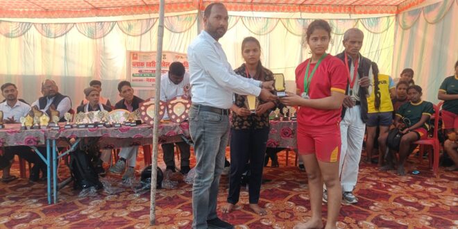 गाजीपुर। नेहरू युवा केंद्र गाज़ीपुर,माय भारत योजना के अन्तर्गत विकास खंड स्तरीय खेल प्रतियोगिता का समापन हनुमान जी नाट्य कला मंच , बौरी में सम्पन्न हुआ। खिलाड़ियों को संबोधित करते हुए विनोद यादव प्रबंधक ने कहा कि आज की युवा पीढ़ी को खेल के माध्यम से राष्ट्र की मुख्य धारा से जोड़कर देश कि रचनात्मक दिशा में अग्रसर किया जाना चाहिए। आज का युवा मोबाइल के डिजिटल युग में जी रहा है और अपना अधिकांश समय मोबाइल में दे रहा है। मोबाइल के साथ साथ अच्छे स्वास्थ्य की आवश्यकता है, क्योंकि कहा गया है स्वस्थ शरीर में ही स्वस्थ मन का विकास होता है। उन्होंने उपस्थित जनमानस से अपील किया कि अपने बच्चों को खेल के प्रति जागरूक करे। विशिष्ट अतिथि काशीनाथ सिंह अवकाश प्राप्त ( कुवैत सरकार) ने कहा कि जब युवाओं के संगठन की बात चलती है तो नेहरू युवा केन्द्र संगठन का नाम अवश्य लिया जाता है, जो सामाजिक कार्यों के लिए प्रेरित करता है। बालिका कबड्डी में महेशपुर प्रथम एवं पंथी का पूर द्वितीय स्थान प्राप्त किया। 400 मी० बालक दौड़ में भगवान बिंद प्रथम, नीरज द्वितीय एवं दीपक कुमार तृतीय स्थान पर रहे। बैडमिंटल में शालू बौरी प्रथम और सपना यादव रोहिली द्वितीय रही। साइकल 500 मीटर धीमी चाल में पूजा बिंद प्रथम ,सुमन मुसल्लहपुर द्वितीय और सपना यादव रोहिली तृतीय स्थान प्राप्त की। वालीबॉल बालक वर्ग में रानीपुर युवा मंडल प्रथम एवं डारेवन दूसरे स्थान पर रहा। कार्यक्रम का संचालन आयोजक अंगद सिंह यादव राज्य प्रशिक्षक ने किया। खेल कोच पारस नाथ यादव, वेचन यादव, राजेश यादव, कालीचरण चौहान, कु० आंचल, पिंकी यादव, अजीत कुमार यादव रहे, प्रतियोगिता को सफल बनाने में धीरज बिंद, शेखर अंसारी, धन्नू सिंह, कमलेश यादव, डीएम यादव, अभिषेक कुशवाहा, श्याम सुन्दर (सेना) का सहयोग सराहनीय रहा। मनीष यादव, आनंद यादव सबके प्रति आभार आशा यादव ने किया।
