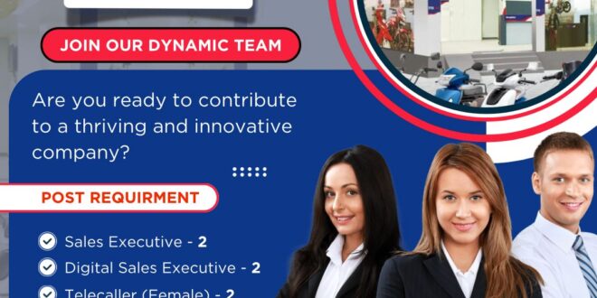 उपलब्ध पद:सेल्स एग्जीक्यूटिव – 2, डिजिटल सेल्स एग्जीक्यूटिव – 2, टेली कॉलर (महिला) – 2, स्पेयर पार्ट्स सेल्स – 1,मैकेनिक – 4,