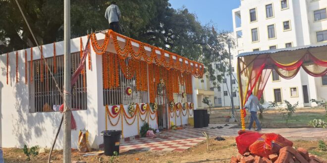 गाजीपुर। महर्षि विश्वामित्र स्वशासीय मेडिकल कालेज छावनी लाइन के परिसर में लगभग 200 वर्ष पुराने सती माता के मंदिर के जिर्णोद्धार और सुंदरीकरण के बाद मंगलवार को राधे-राधे परिवार के रविशंकर महाराज काशी के द्वारा तीन दिवसीय महापूजा का विधि विधान से शुभारंभ किया गया। सती माता के मंदिर को फूल, मालाओं से भव्य तरीके से सजाया गया। इस संदर्भ में मेडिकल कालेज के प्रिंसिपल प्रोफेसर डा. आनंद मिश्रा ने बताया कि मेडिकल कालेज के परिसर में सती माता का लगभग 200 वर्ष पहले 1830 में स्थापित सती माता का आलौकिक मंदिर था समय के साथ ही मंदिर का स्वरुप जर्जर हो गया था। सती माता के मंदिर का जिर्णोद्धार कर नवनिर्माण कर सुंदरीकरण किया गया है। इस मंदिर में मां सरस्वती, राधाकृष्ण, शिव परिवार और हनुमान जी की मूर्ति की स्थापना की जायेगी। प्राण प्रतिष्ठा और महापूजा का आज शुभारंभ हो गया है। काशी के पंडित रविशंकर महाराज जी के देखरेख में विधि विधान से पूजा हो रहा है। इसका समापन 20 फरवरी को भंडारे के साथ होगा।