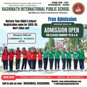 गाजीपुर। काशीनाथ ग्रुप आफ इंस्टीट्यूशंस बांकीखुर्द बाराचवर गाजीपुर के प्रबंधक संजय यादव ने पूर्वांचल न्यूज डाट काम को बताया कि काशीनाथ इंटरनेशनल पब्लिक स्कूल के सत्र 2025-26 में प्रवेश के लिए फ्री एडमिशन के लिए मैनेजमेंट ने घोषणा की है। उन्होने बताया कि काशीनाथ इंटरनेशनल पब्लिक स्कूल में नर्सरी से लेकर 12 तक सीबीएसई बोर्ड के पाठ्यक्रम के आधार पर शिक्षा प्रदान की जाती है। हमारे ग्रुप के संस्थापक चेयरमैन पूर्व एमएलसी काशीनाथ यादव ने इस पिछड़े क्षेत्र में शिक्षा के विकास के लिए लगभग तीन दशक पूर्व यहां पर कालेजों की स्थापना किये थे। उन्होने इस पिछड़े क्षेत्र में गरीब बच्चों की शिक्षा के लिए अधिक योजनाएं चलायीं। समय की मांग को देखते हुए सीबीएसई बोर्ड के पाठ्यक्रम पर आधारित अंग्रेजी माध्यम से शिक्षा की आवश्यकता हुई। जिसको लेकर काशीनाथ इंटरनेशनल पब्लिक स्कूल की स्थापना की गयी। मैनेजमेंट ने यह निर्णय लिया कि इस सत्र में एडमिशन फीस माफ कर दिया जाये।