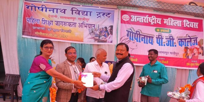 गाज़ीपुर। गोपीनाथ पीजी कालेज की प्राचार्या डॉ सुधा त्रिपाठी के नेतृत्व में एनएसएस इकाई द्वारा महाविद्यालय परिसर में अंतर्राष्ट्रीय महिला दिवस धूमधाम के साथ मनाया गया। कार्यक्रम की मुख्य अतिथि इनरव्हील क्लब मऊ की अध्यक्ष मीना लाल व विशिष्ट अतिथि इनरव्हील क्लब की वाइस प्रेसिडेंट विद्या चौहान, सचिव ज्योति सिंह, आईएसओ रितू अग्रवाल, कोआर्डिनेटर डॉ रुचिका मिश्रा, मीना अग्रवाल व सोनी गुप्ता उपस्थित रहीं। कार्यक्रम का प्रारंभ दीप प्रज्वलित कर सरस्वती वंदना प्रस्तुत की गई। तत्पश्चात अतिथियों का माल्यार्पण व बुके देकर किया गया। एन.एस.एस छात्राओं ने स्वागत गीत प्रस्तुत किया। आराधना त्रिपाठी ने कहा कि शिक्षा, सामाजिक और आर्थिक स्वतंत्रता से ही महिला सशक्त हो सकती है, अतः महिला शिक्षा की ओर विशेष ध्यान देना चाहिए उन्हें अधिक से अधिक सुविधाएं देना आवश्यक हैं। मुख्य अतिथि मीना लाल अग्रवाल ने कहा कि अंतर्राष्ट्रीय महिला दिवस मनाने का महत्व तब और बढ़ जाता जब सामाजिक सोच में बदलाव आये और महिलाओं को बराबरी का हक दें। उन्होंने कहा महिला सशक्तिकरण के लिए महिलाओं को आर्थिक रूप से मजबूत होने की आवश्यकता है। विशिष्ठ अतिथि डॉ रूचिका मिश्रा ने कहा कि इस प्रकार के महिला दिवस के आयोजन से महिलाओं को प्रेरणा मिलती है। महिलाओं की सुरक्षा के लिए संवधिान एवं सरकार अनेक कानून बनाये गये है लेकिन लड़कियों को अपनी आवाज खुद उठानी होगी, महिला पुरूष बराबर हैं इसकी शुरूआत घर से ही संस्कारों द्वारा की जा सकती है। ज्योति सिंह ने कहा कि समाज को अपनी सोच बदलना ही होगा क्योंकि महिलाओं में पुरूषों की तरह ही कार्यक्षमता है इसमें कोई संदेह नहीं है। कार्यक्रम की अध्यक्षता कर रही कालेज प्राचार्या डॉ सुधा त्रिपाठी ने कहा कि महिला सशक्तिकरण दिवस केवल एक दिन के लिए नहीं है। केवल एक दिन मनाने से कुछ नहीं होगा। प्रतिदिन महिला को सशक्त करने और बराबरी का हक देेना होगा तभी परिवार, समाज और देश का विकास होगा। कार्यक्रम का संचालन करते हुए डॉ गिरिश चंद्र ने कहा कि महिलाओं के शोषण के विरूद्ध 1909 में न्यूयार्क में पहली बार पन्द्रह हजार महिलाओं ने आवाज उठाई। मार्च 1911 में अधिकांश यूरोपियन देशों में महिला दिवस मनाया गया। संयुक्त राष्ट्रसंघ ने 1975 में 08 मार्च को अधिकारिक रूप से अंतर्राष्ट्रीय महिला दिवस की घोषणा की तभी से भारत एवं दुनिया के सभी देशों में महिलाओं को सम्मान देने के लिए महिला दिवस मनाया जाता है। डॉ चन्द्रमणि पांडेय ने सभी को बधाई देते हुए महिला सम्मान पर विस्तार से चर्चा की। एन.एस.एस छात्राओं ने मातृगीत व महिला शक्ति गीत गाकर कार्यक्रम को गौरवान्वित किया। इस अवसर पर आभार एवं धन्यवाद डॉ अंजना तिवारी द्वारा 