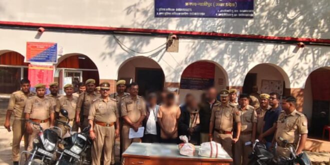 गाजीपुर। अपराध एवं अपराधियों के विरूद्ध चलाये जा रहे अभियान के क्रम में आज दिनांक 08.03.2025 को थाना मुहम्मदाबाद पुलिस टीम द्वारा मुहल्ला जफरपुरा कस्बा मुहम्मदाबाद में अवैध जुआ संचालन/खेलने की गोपनीय सूचना पर व0उ0नि0 लाल बहादुर सिंह के नेतृत्व में पुलिस की 04 टीम बनाकर अनस खां पुत्र अच्छू खां निवासी मुहल्ला जफरपुरा कस्बा मुहम्दाबाद जनपद गाजीपुर के नवनिर्मित मकान पर पहुँच कर घेराबंदी करके छापा मारा गया तो कई व्यक्ति कमरे के अन्दर खेलते हुए पाये गये । जिनके हाथ मे टिकट का बुकलेट , कलम दफ्ती ,कैल्कुलेटर, नगदी रुपया और मोबाईल फोन बरामद हुआ । गिरफ्तारशुदा अभियुक्तगण के विरुद्ध थाना स्थानीय पर मु0अ0सं0 78/2025 धारा ¾ सार्वजनिक जुआ अधिनियम पंजीकृत कर अग्रिम विधिक कार्यवाही की जा रही है ।
