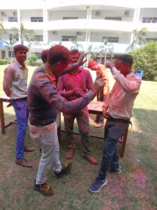 वाराणसी। अशोका इंस्टीट्यूट ऑफ टेक्नोलॉजी एण्ड मैनेजमेंट परिसर में होली के अवसर पर आयोजित होली मिलन समारोह में कालेज के सभी शिक्षक शिक्षिकाओं एवं कर्मचारियों ने अबीर गुलाल संग खेली होली इस अवसर पर संस्थापक ई0 अशोक मौर्य चेयरमैन ई0 अंकित मौर्य, वाइस चेयरमैन डा0 अमित मौर्य ,अशोका स्कूल ऑफ बिजनेस के मैनेजिंग डायरेक्टर अनुभव मौर्य , रजिस्ट्रार ई0 असीम देव , डायरेक्टर डा0 सारिका श्रीवास्तव , डीन एकेडमिक अशोका प्रो0 एस0के0 शर्मा ,डीन एस0एस0 कुशवाहा, डायरेक्टर फार्मेसी डा0 बृजेश सिंह ,अशोका स्कूल ऑफ बिजनेस के प्रिंसिपल डा0 शिरीश श्रीवास्तव , ने सभी शिक्षकों एवं कर्मचारियों को गुलाल लगाया एवं गले लगाकार होली की बधाई दी। होली मिलन के दौरान होली के गीतों पर सभी ने डांस किए इस दौरान अबीर गुलाल के सतरंगी रंगों ने पूरे परिसर का माहौल खुशनुमा बना दिया होली के गीतों पर लगाभग दो घण्टे तक सभी ने मस्ती की गाने गाए और डांस किए कार्यक्रम के अंत में सभी लोगों ने ठंडई और अल्पाहार ग्रहण किया।