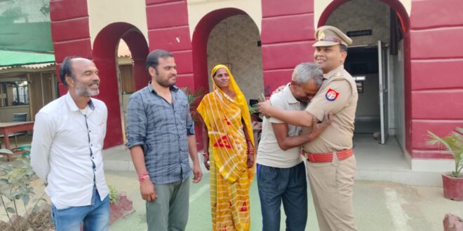 गाजीपुर। थाना सैदपुर में दिनांक 16.03.2025 को भटकते हुए एक व्यक्ति मिले जिनकी मानसिक स्थिति व्यथित थी पूंछताछ करने पर उन्होंने अपना नाम विद्याराम शर्मा पुत्र सिद्दार शर्मा निवासी बेलखारी थाना गोहद जनपद भिंड मध्य प्रदेश बताए काफी प्रयास के बाद उनके स्थानीय थाने से सम्पर्क कर उनके परिजनों को सूचना दी गई। जिस पर आज उनके दामाद सौरभ शर्मा पुत्र राम बदन शर्मा निवासी आनंद नगर थाना बोधापुर जनपद ग्वालियर मध्य प्रदेश व उनकी पत्नी यशोदा शर्मा के साथ आज दिनांक 17.03.2025 को यहाँ पहुंचे एक दूसरे को देखते ही दोनों दंपत्ति भाव विभोर हो गए तथा खुशी के आंसू बह पड़े। पूंछने पर विद्या राम शर्मा जी ने बताया की वे लोग 14 फरवरी को बस द्वारा एक समूह में संगम स्नान हेतु प्रयागराज निकले थे, जहाँ दोनों साथ में स्नान किये लेकिन स्नान बाद बिछड़ गए और भटकते हुए कुछ दिन पहले सैदपुर आ गए कल एक युवक ने थाने पहुँचाया जहाँ से घर बात हुई। मैं घर पहुँचने की उम्मीद छोड़ चुका था। लेकिन सैदपुर पुलिस के प्रयास से आज मैं अपने घर वालों से मिला। पत्नी यशोदा शर्मा ने बताया की संगम स्नान के बाद मेरा पति से साथ छूट गया था, हम लोगों ने हर तरफ खोजा यहाँ तक की चित्रकूट, इटावा और कई जिलों में जहाँ उम्मीद थी खोजने गए लेकिन वो नहीं मिले उम्मीद कम हो रही थी लेकिन एक आशा थी की वो जरूर मिलेंगे होली एक दम मनहूस बीती लेकिन कल जब घर सूचना मिली तो जो खुशी मिली की आपको बता नहीं सकती कल जब थाने से वीडियो कॉल पर बात हुई नया जीवन मिलने जैसी अनुभूति हुई हम गाजीपुर पुलिस के बहुत आभारी रहेंगे।