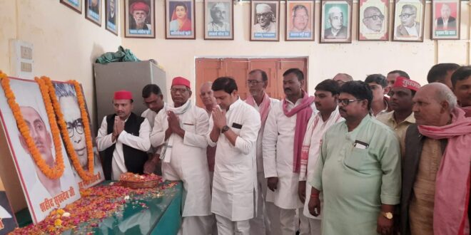 गाजीपुर। महान समाजवादी चिंतक, समाजवादी आंदोलन के अग्रणीय नेता डा.राममनोहर लोहिया की जयंती एवं शहीद-ए-आजम भगतसिंह , शहीद राजगुरु, शहीद सुखदेव जी के शहादत दिवस पर श्रद्धा सुमन अर्पित किया गया। गोष्ठी की अध्यक्षता सपा जिलाध्यक्ष गाजीपुर गोपाल सिंह यादव ने किया। संचालन महासचिव कन्हैयालाल विश्वकर्मा ने किया। गोष्ठी में विचार व्यक्त करते हुए गोपाल यादव ने कहा कि जब तक धरती पर गैरबराबरी रहेगी, तब तक डा.लोहिया के विचार प्रासंगिक रहेंगे। डा.लोहिया ने कहा कि समाज के अन्तिम व्यक्ति के चेहरे पर मुस्कान चाहते हैं। आज उन्हीं के विचारों को आगे बढ़ाते हुए सपा के मा. राष्ट्रीय अध्यक्ष जी PDA की मजबूती के लिए संघर्षरत है। गोष्ठी में सर्वश्री पूर्व विधायक खुर्शीद अहमद,राष्ट्रीय सचिव राजेश कुशवाहा, पूर्व जिलाध्यक्ष गण रामधारी यादव, सुदर्शन यादव,डा.नन्हकू यादव, पूर्व विधायक त्रिवेणी राम,रविंद्र प्रताप यादव, मुन्नन यादव, जगमोहन बिन्द, मदन यादव, रीता विश्वकर्मा, सदानंद यादव, नरेन्द्र कुशवाहा,अमित ठाकुर, राजेश यादव, अभिषेक कुशवाहा, धर्मचंद, श्रीराम यादव, सुजीत कुमार,भरत यादव, सुशील जयसवाल, गरीब राम,इलियास, पप्पू कुशवाहा, बैजू, अशोक यादव, रामशीष, सूर्यमणी, लल्लन राम, कैलाश यादव, रिशु, सुग्गू, अवधेश कुशवाहा, नीलम, अनीता, ममता, संतोष कुमार, अवधेश यादव, रीतेश हरबंस यादव इत्यादि लोग उपस्थित रहे।