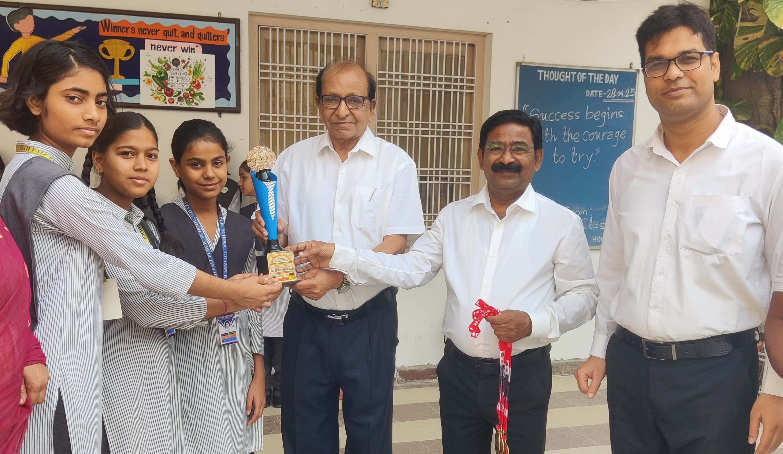 गाजीपुर। ‘फिट इंडिया कार्यक्रम’ के तहत जवाहर नवोदय विद्यालय, ग़ाज़ीपुर के तत्वावधान में दिनांक 13 अप्रैल से 21 अप्रैल 2025 तक “ग़ाज़ीपुर खेल महोत्सव” मनाया गया। इसमें 19 विद्यालयों ने प्रतिभाग किया। इस महोत्सव में खो खो, रिले रेस, डिसकस थ्रो, बैडमिंटन, शतरंज एवं शॉटपुट की प्रतियोगिताएं आयोजित हुईं। शाह फैज़ विद्यालय से लगभग 34 छात्र छात्राओं ने भाग लिया। हमारे विद्यालय से खो-खो (बालक) वर्ग से शादान अहमद, रूद्र राय, रूद्र यादव, रौनक यादव, अंश यादव, ध्रुव राय, कुशाग्र कटियार, विवेक यादव, संस्कार यादव, संयम श्रीवास्तव, प्रद्युम्न यादव एवं अनमोल राय एवं बैडमिंटन (एकल) बालिका वर्ग से अन्वेषा यादव ने प्रतिभाग किया व उपविजेता रहे। खो-खो (बालिका) वर्ग से आकृति यादव, नैवैद्याआनंद, अश्का आनंद, खुशी, मेघाली राय, शगुन सिंह, शफा परवीन, काजल यादव, अनुषा यादव, दीक्षा उपाध्याय, आयुषी सिंह एवं जुनैरा मसूद ने, बैडमिंटन बालिका वर्ग (युगल) से अदिति यादव एवं नताशा, बैडमिंटन बालक वर्ग (एकल) एवं (युगल) से गौरव प्रताप सिंह, दिव्यांशु सिंह एवं कुशाग्र सिंह ने तृतीय स्थान सुरक्षित किया। शतरंज में बालक एवं बालिका वर्ग से क्रमशः युसूफ, वैभव, सृजन, विख्यात, अनन्या, अदिति, विधि एवं अराध्या विजयी रहे। 200 मीटर एवं 400 मीटर रेस में क्रमशः आयुषी एवं शादान ने तथा शॉटपुट व डिसकस थ्रो बालक एवं बालिका वर्ग से कुशाग्र अदिति एवं अन्वेषा ने कांस्य पदक प्राप्त किया। इन सभी प्रतिभागियों को आज विद्यालय के प्रांगण में प्रार्थना सभा में विद्यालय के निदेशक डॉ नदीम अधमी ने मेडल व ट्रॉफी देकर सम्मानित किया। इस सफलता में हमारे विद्यालय के अध्यापक देवेंद्र प्रजापति, दिनेश राय एवं आमना ओबैद का महत्वपूर्ण योगदान रहा। इस सम्मान समरोह में विद्यालय के सभी छात्र-छात्राएं, निदेशक डॉ नदीम अधमी, निदेशिका डॉ मीना अधमी, प्रधानाचार्य इकरामुल हक़, उप प्रधानाचार्य (प्रशासन) डॉ प्रीती उपाध्याय, उप प्रधानाचार्य (शैक्षणिक) हनीफ अहमद एवं सभी शैक्षणिक व गैर शैक्षणिक कर्मचारी उपस्थित थे। कार्यक्रम का समापन राष्ट्रगान से हुआ।