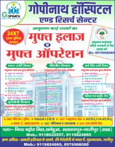 गाजीपुर। गोपीनाथ हास्पिटल एंड रिसर्च सेंटर सनेहुआ सलामतपुर गाजीपुर के चिकित्सकों ने युवक का जटिल ऑपरेशन सफलतापूर्वक करके उसकी जान बचायी जिसकी चर्चा पूरे क्षेत्र में है। हास्पिटल के प्रबंधक शुभम ने बताया कि अगस्त पांडेय उम्र 24 वर्ष ग्राम सेमरी जिला बक्सर के निवासी हैं। 30 अप्रैल को उन्हे गंभीर अवस्था में हमारे हास्पिटल में भर्ती कराया गया जहां पर चिकित्सकों ने जांच के बाद बताया कि इनके किडनी में स्टोन है। इसके बाद चिकित्सकों ने मरीज का दूरबीन विधि से सफलतापूर्वक आपरेशन किया। मरीज स्वस्थ्य है और अपने घर चला गया। उन्होने बताया कि गापीनाथ हास्पिटल में कम कीमत पर अच्छा इलाज होता है। और बिहार के निकट होने के चलते सीमावर्ती बिहार के जनपदों में यह हास्पिटल काफी लोकप्रिय है। उन्होने बताया कि इस हास्पिटल में आयुष्मान कार्ड धारकों का मुफ्त ऑपरेशन होता है इसके अलावा आयुष्मान कार्ड धारकों का ट्यूमर, हार्निया, पथरी, अपेंडिक्टस, हाइड्रोसिल व बवासीर आदि का मुफ्त आपरेशन होता है। आयुष्मान कार्ड धारकों का यूरोलाजी विभाग में किडनी में पथरी और प्रोस्टेट का निशुल्क आपरेशन होता है। उन्होने बताया कि आयुष्मान कार्ड धारकों का मुफ्त कुल्हा, और घुटने का प्रत्यारोपण होता है। जोड़ों का दर्द, सर्वाइकल, पैटाइशी बच्च्े के पैर का टेढ़ापन, बोन ट्यूमर, फैक्चर, बच्चेदानी का ऑपरेशन एवं स्त्री संबंधित सभी रोगों का मुफ्त इलाज होता है। अधिक जानकारी के लिए मोबाइल नम्बर 8576968080 पर संपर्क कर सकते हैं।