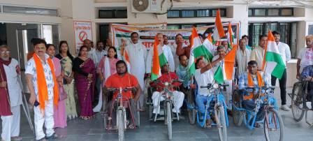 गाजीपुर। भाजपा दिव्यांग प्रकोष्ठ और समर्पण संस्था के तत्वाधान में भारतीय शौर्य तिरंगा यात्रा का आयोजन किया गया। जिसमें जाबाज सैनिकों के सम्मान सहित शौर्य एवं पराक्रम को प्रणाम करते हुए सविता सिंह संरक्षिका समर्पण संस्था के नेतृत्व में यात्रा रवाना की गई। तिरंगा यात्रा विकास भवन परिसर से पीरनगर , सिकंदरपुर होते कचहरी स्थित सरयु पांडेय पार्क पहुची। जिसमें मुख्य अतिथि मदन मोहन वर्मा क्षेत्र संयोजक, दिव्यांग प्रकोष्ठ काशी क्षेत्र ने कहा कि हमारे देश के 27 नौजवानो का धर्म पूछ कर गोली मारने वाले आतंकियों को सबक सिखाने के लिए हमारे देश के वीर सैनिको ने आपरेशन सिन्दूर के तहत पाकिस्तान के अंदर घुसकर मुंह तोड़ करारा जवाब दिया है।अब पाकिस्तान भविष्य मे ऐसा दुस्साहस नहीं करेगा। विनोद अग्रवाल ने कहा कि देश की बेटी कर्नल सोफिया कुरैशी और व्योमिका सिंह ने पाकिस्तान में घुस कर आतंकी ठिकानों को निशाना बना कर उनको नेस्तनाबूद कर दिया। दिव्यांगजन यात्रा को सफल बनाने के लिए समर्पण संस्था द्वारा जगह-जगह पानी और गुड़ की व्यवस्था की गई थी। चिलचिलाती व कड़ाके की धूप के बावजूद दिव्यांगजनो का हौसला काफी बुलंद था। देश के सरहद पर रक्षा करने वाले सैनिकों की शौर्य गाथा से हौसले जोश से भरे थे। यात्रा में कुंवर रूपेश कुमार जिला संयोजक, बृजेंद्र राय ,योगेश सिंह,अभिनव जयसवाल ,अजय कुशवाहा,अरुण वर्मा ,राजेश राम ,लालसा पासवान, हरिहर बिंद ,शायमा, सन्तोष ,फेकूराम ,अशोक कुमार अध्यापक ,अजित कुमार ,सुमित्रा सिंह, नाजिया बेगम,रागिनी सिंह,अफजाल खान, प्रभु नाथ के साथ नगर के गणमान्य लोग मौजूद थे। अंत में अमरनाथ गुप्ता ने सभी आगंतुक का आभार प्रकट करते हुए कार्यक्रम का समापन किया।