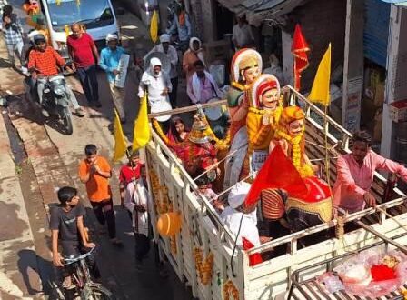 गाजीपुर। सादात नगर के पूर्वी छोर पर स्थित अति प्राचीन डीह बाबा मंदिर का जीर्णोद्धार और सुंदरीकरण कार्य नगरवासियों के सहयोग से हो रहा है। मंदिर में नवीन प्रतिमा की प्राण प्रतिष्ठा 30 व 31 मई को होगा। इससे पूर्व प्रतिमा के साथ गुरुवार को नगर में भव्य शोभायात्रा निकाली गई, जिसमें सैकड़ों की संख्या में श्रद्धालु महिला व पुरुष शामिल हुए। रेलवे स्टेशन के निकट स्थित महावीर मंदिर से शुरू हुई शोभायात्रा रघुवंश चौराहा, बस स्टैण्ड, मुख्य बाजार, पुरानी बाजार होते हुए डीह बाबा मंदिर पहुंचकर समाप्त हुई। डीजे पर बज रहे भक्ति गीतों, बैंडबाजा, शंखनाद, घंट घड़ियाल की गूंज से समूचा नगर गुंजायमान हो उठा। पत्थर की विशालकाय डीह बाबा सहित हनुमंत बाबा की प्रतिमा को चार पहिया वाहन पर रखकर निकली शोभायात्रा के दौरान रास्ते में जगह जगह श्रद्धालुओं को समाजसेवियों की तरफ से पानी आदि पिलाने की व्यवस्था की गई थी। गौरतलब है कि नगर के डीह बाबा की मूर्ति जो काफी प्राचीन होकर क्षतिग्रस्त हो गई थी और मंदिर का भवन जर्जर हो गया था। इसके नवनिर्माण हेतु नगर के कुछ उत्साही युवकों की टीम पिछले छह महीने से लगी थी। नगर सहित आसपास के गांवों के लोगों से चंदा एकत्रित कर तथा श्रमदान करते हुए मंदिर के भवन का नवनिर्माण कराते हुए नई मूर्ति स्थापित की जा रही है। प्रतिमा के विधिवत प्राण-प्रतिष्ठा का कार्य शुक्रवार तथा शनिवार को प्रसाद वितरण का कार्य होगा। शोभायात्रा के दौरान पुलिसकर्मी भी मौजूद रहे।