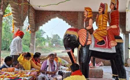 गाजीपुर। सादात नगर के पूर्वी छोर पर स्थित डीह बाबा मंदिर के जीर्णोद्धार के उपरांत प्रतिमा के प्राण प्रतिष्ठा का कार्य शनिवार को सम्पन्न हुआ। पंडित अशोक चौबे के मार्गदर्शन में विधिवत हवन पूजन और मंत्रोच्चार के बीच मूर्तियों की प्राण प्रतिष्ठा की गई। ग्राम क्षेत्र की सुख-समृद्धि, शांति और सामाजिक कल्याण की कामना संग आयोजित हवन पूजन में मुख्य रूप से अनिल शर्मा, काशीनाथ कुशवाहा, मुनीब प्रजापति, वंशराज सोनकर, अंकित बर्नवाल, संजय शर्मा, रामा गोड़ सहित क्षेत्र के गणमान्य लोग, समाजसेवी, युवाओं और महिलाओं की भारी भागीदारी देखने को मिली। प्राण प्रतिष्ठा होते ही पूरा इलाका “डीह बाबा की जय” के नारों से गूंज उठा। महिलाओं ने सगुन और पारंपरिक मंगल गीतों की मधुर धुनों से वातावरण को भक्तिमय बना दिया। अंत में पुण्य लाभ की कामना संग भक्तों ने प्रसाद ग्रहण किया। प्राण प्रतिष्ठा के महत्व को बताते हुए पंडित अशोक चौबे ने कहा कि प्रतिमा की प्राण प्रतिष्ठा एक महत्वपूर्ण धार्मिक प्रक्रिया है, जो भक्तों को ईश्वर से जुड़ने का अवसर प्रदान करती है। यह प्रक्रिया मूर्ति को जीवित और जागृत बनाती है, जिससे भक्त उसकी पूजा करके आशीर्वाद प्राप्त कर सकते हैं।