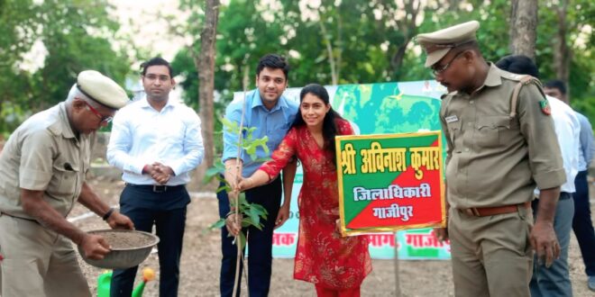 गाजीपुर। जिलाधिकारी अविनाश कुमार ने पत्नी के साथ विश्व पर्यावरण दिवस एवं गंगा दशहरा के अवसर पर सामाजिक वानिकी वन प्रभाग की तरफ से कल्पवृक्ष, महोय (सी हिबिस्कस), रक्त चंदन एवं नीम का पौधा अपने आवासीय परिवार में रोपित किया । इस अवसर पर जिलाधिकारी ने जन-जन को संदेश दिया कि पर्यावरण दिवस प्रत्येक वर्ष 5 जून को मनाया जाता है यह दिन हमारे पर्यावरण की रक्षा की आवश्यकता के बारे में जागरूकता बढ़ाने और प्रकृति के संरक्षण के लिए लोगों को एकजुट करने का आवाह्न करती है। प्रत्येक व्यक्ति को एक पेड़ मां के नाम से लगाए एवं उसका संरक्षण अवश्य करे। इस अवसर पर प्रभागीय निदेशक विवेक यादव उपस्थित रहे।