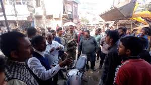 प्रयागराज। प्रशासन के द्वारा अतिक्रमण के नाम पर कचहरी के सामने चैंबर और व्यापारियों की दुकानें हटाने के विरोध में बुधवार को आक्रोशित लोगों ने कचहरी के सामने चक्काजाम कर दिया। सड़क पर टिनशेड और टूटे फर्नीचर सड़क पर रखकर आवागमन रोक दिया है। आगजनी भी की गई। इससे कचहरी का पूरा इलाका पुलिस छावनी में तब्दील हो गया है। लक्ष्मी टाकीज चौराहे से ही बैरिकेडिंग कर रास्ता रोक दिया गया है। आंदोलन के मद्देनजर बड़ी संख्या में पुलिस बल को मौके पर तैनात कर दिया गया है। प्रशासन ने बुधवार को भोर में बड़ी कार्रवाई करते हुए विकास भवन और कचहरी के सामने सड़क के किनारे रखे वकीलों के कुर्सी मेज, चैंबर और व्यापारियों की दुकानों को जेसीबी और बुलडोजर से हटवा दिया। सुबह इसकी जानकारी मिलते ही लोगों का गुस्सा फूट पड़ा। सैकड़ों की संख्या में लोगों ने पुहुंचकर नगर निगम की कार्रवाई के खिलाफ सड़क जाम कर दिया है।