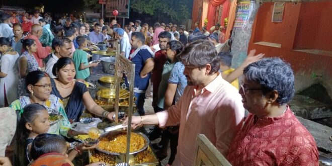 मऊ। ज्येष्ठ माह के बड़े मंगलवार को नगर के पावर हाउस स्थित राम जानकी मंदिर पर श्रद्धालुओं द्वारा भव्य भंडारे का आयोजन किया गया था। जिसमें हजारों श्रद्धालुओं ने महाप्रसाद ग्रहण किया। नगर के राम जानकी मंदिर पर मंगलवार की शाम बाबा भंडारी का आयोजन किया गया जहां भगवान को भोग लगाने के बाद पूरी सब्जी बुंदिया तेरी तैयारी का श्रद्धा पूर्वक वितरण किया गया श्रद्धालुओं द्वारा कतार में लगकर बड़ी संख्या में महाप्रसाद ग्रहण किया गया। आयोजन प्रमुख लालबहादुर जायसवाल व बबलू राय ने कहा कि ज्येष्ठ माह के सभी बड़े मंगलवार को मंदिर पर श्रद्धालुओं के लिए चना, ठंडा शरबत इत्यादि की व्यवस्था की गई थी। वहीं अंतिम बड़े मंगलवार को महाप्रसाद का आयोजन किया गया है। इस अवसर पर मंदिर के प्रधान पुजारी गोलू जी महाराज, जायसवाल समाज जिलाध्यक्ष लालबहादुर जायसवाल, भाजपा नेता शक्ति सिंह, विक्रांत जायसवाल, बबलू राय, बृजेश गुप्ता, लल्लन राय इत्यादि बड़ी संख्या में लोग उपस्थित रहे।