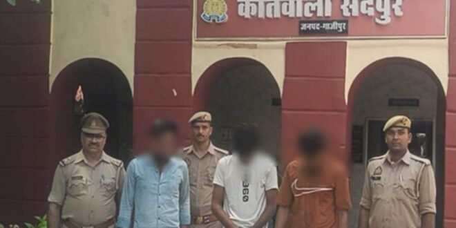 गाजीपुर। अपराध एवं अपराधियों के विरुद्ध चलाये जा रहे अभियान के क्रम में आज दिनांक 13.06.2025 को थाना सैदपुर के उ0नि0 अनोज सिंह मय हमराह व थाना एएनटीएफ गाजीपुर निरीक्षक सुरेन्द्र नाथ सिंह मय हमराह द्वारा मुखबिर की सूचना पर शरीफपुर पुल के पास चेकिंग की जा रही थी कि 03 नफर अभियुक्तगण 1. विजय प्रताप सिंह पुत्र रामआसरे सिंह 2. नसीर रायनी पुत्र स्व0 नसीम तथा 3. रोहित कुमार गोंड़ पुत्र विनोद गोंड़ के पास से 50.75 किलोग्राम अवैध नाजायज गांजा, 04 अदद मोबाईल (एण्ड्रायड) , 01 अदद सुजुकी बलेनो नं0 UP61AX1116 व 01 अदद टाटा टिगोर गाड़ी नं0 UP61AJ 2241 बरामद किया गया । बरामदगी व गिरफ्तारी के आधार पर अभि0गण के विरुद्ध थाना स्थानीय पर मु0अ0सं0 188/25 धारा 8/20/29/60 एनडीपीएस एक्ट पंजीकृत किया गया। गिरफ्तारशुदा अभियुक्तगण के विरुद्ध अग्रिम विधिक कार्यवाही की जा रही है ।