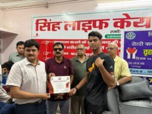 गाजीपुर। विश्व रक्तदान दिवस के अवसर पर आज रोटरी क्लब गाजीपुर के द्वारा जनपद के जमनिया मोड़, गंगा ब्रिज मार्ग स्थित सिंह लाइफकेयर हॉस्पिटल में रक्तदान शिविर का आयोजन किया गया | कार्यक्रम का आयोजन रोटरी ब्लड डोनेशन चेयरमैन रो० डॉ० राजेश कुमार सिंह के देख-रेख में किया गया | इस रक्तदान शिविर कार्यक्रम की अध्यक्षता रोटरी क्लब गाजीपुर के अध्यक्ष रो० सी.पी चौबे व सचिव रो० बरुन कुमार अग्रवाल ने किया | इस पुनीत कार्य में रो० डॉ० राजेश कुमार सिंह (रोटरी ब्लड डोनेशन चेयरमैन), रो० संतोष कुमार वर्मा आदि रोटेरियन सहित हॉस्पिटल के डॉक्टर व नर्सिंग स्टाफ के अतिरिक्त क्रिकेट परफॉरमेंस सेण्टर के रंजन सिंह, संतोष पाठक, आयुष यादव, अश्वनी राय, सूर्यांश आदि ने स्वेच्छापूर्वक बढ़-चढ़कर रक्तदान-महादान का हिस्सा बनते हुए रक्तदान किया | इस अवसर पर रो० डॉ० राजेश कुमार सिंह ने बताया कि एक तरफ जहाँ रक्तदान करने के उपरांत रक्तदाता के शरीर ने नए रक्त का सृजन तेज गति से होता है वही दूसरी तरफ दान किये गए रक्त से जरूरतमंद लोगों के जीवन की रक्षा भी की जाती है | उन्होंने बताया कि चेयरमैन रोटरी ब्लड डोनेशन होने के कारण हमारा प्रयास रहता है कि इस प्रकार के जीवनोपयोगी अभियान में सक्रिय रहता हूँ तथा सिंह हॉस्पिटल स्थित ब्लड बैंक में पर्याप्त मात्रा में रक्त संरक्षित किया जाता है ताकि आवश्यकता पड़ने पर ज़रूरतमंदों को रक्त उपलब्ध करा जीवन को बचाया जा सके | डायरेक्टर क्लब रो० संजीव कुमार सिंह जुलाई से शुरू 2024-25 के सत्र में हमारे रोटरी क्लब गाजीपुर ने बड़े-बड़े जनहित के कार्य किये गए | 2024-25 के सत्र का अंतिम कार्यक्रम के रूप में आज विश्व रक्तदान दिवस मनाया गया | उन्होंने बताया कि उनका ब्लड ग्रुप बी नेगेटिव है जो कि बहुत ही कम लोगों का होता है एवं ज़रूरत पड़ने पर वह रक्तदान करने को तत्पर रहते हैं | उन्होंने उम्मीद जताई कि अगले माह से शुरू होनेवाले नए सत्र में नवनियुक्त अध्यक्ष रो0 बरुन कुमार अग्रवाल की टीम भी जनहित कार्यक्रमों को अनवरत चलाते रहेगी। इस अवसर पर रोटरी क्लब अध्यक्ष रो० सी.पी. चौबे, सचिव रो० बरुन कुमार अग्रवाल, डायरेक्टर क्लब सर्विसेज रो० संजीव कुमार सिंह एवं रोटरी ब्लड डोनेशन चेयरमैन रो० डॉ० राजेश कुमार सिंह के अतिरिक्त रो० जीशान जिया, रो० राजेश प्रसाद रो० असित सेठ, रो० संतोष कुमार वर्मा, डॉ0 अनुपमा सिंह, धर्मेन्द्र सिंह सहित क्रिकेट परफॉरमेंस सेण्टर के रंजन सिंह, संतोष पाठक, आयुष यादव, अश्वनी राय, सूर्यांश सहित सिंह हॉस्पिटल के डॉक्टर व नर्सिंग स्टाफ बड़ी संख्या में उपस्थित थे|