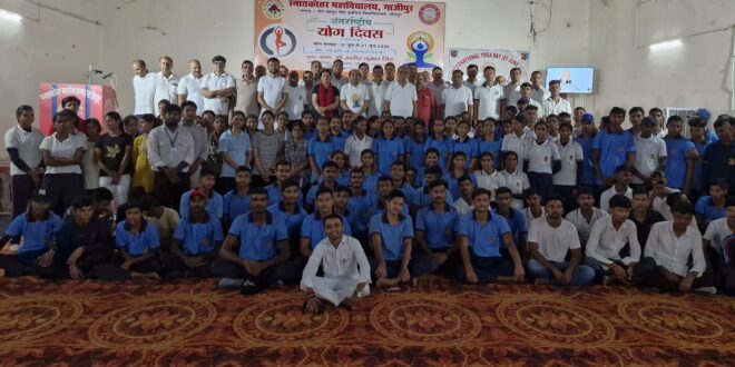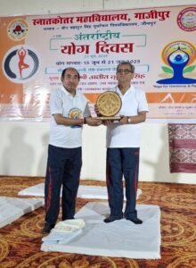 गाजीपुर। स्नातकोत्तर महाविद्यालय, गाजीपुर में 11 वां अंतर्राष्ट्रीय योग दिवस बड़े उत्साह एवं उमंग के साथ मनाया गया। इस वर्ष की थीम “एक पृथ्वी, एक स्वास्थ्य के लिए योग” थी। यह थीम पर्यावरण संरक्षण और शारीरिक, मानसिक व आत्मिक स्वास्थ्य को बढ़ावा देती है। कार्यक्रम में स्नातकोत्तर महाविद्यालय, तकनीकी शिक्षा एवं शोध संस्थान और कृषि विज्ञान केंद्र के शिक्षक, कर्मचारी और छात्र-छात्राएं शामिल हुई। कार्यक्रम में मुख्य अतिथि उत्तर प्रदेश शासन उच्च न्यायालय इलाहाबाद के अपर महाधिवक्ता व पीजी कॉलेज के सचिव अजीत कुमार सिंह थे। प्राचार्य प्रोफे० (डॉ०) राघवेन्द्र कुमार पाण्डेय ने बुके, स्मृति चिन्ह अंगवस्त्रम देकर उनका स्वागत किया। कार्यक्रम सुबह 6:30 बजे प्रधानमंत्री श्री नरेन्द्र मोदी जी के उद्बोधन और ओम ध्वनि के साथ शुरू हुआ। योग प्रशिक्षक श्री प्रेम नाथ उपाध्याय ने योगासन, प्राणायाम और ध्यान सिखाया। कुलाधिपति श्रीमती आनंदीबेन पटेल राजभवन, लखनऊ के निर्देशानुसार सुबह 8:00 से 8:10 बजे तक सामूहिक सूर्य नमस्कार किया गया जो सामूहिक सूर्य-नमस्कार विश्व रिकॉर्ड बनाने के क्रम में था। मुख्य अतिथि अजीत कुमार सिंह ने कहा कि “योग केवल व्यायाम नहीं, बल्कि जीवन जीने की कला है। यह मन, शरीर और आत्मा को जोड़ता है।” उन्होंने युवाओं से प्रतिदिन सुबह योगाभ्यास करने की अपील की। उन्होंने कहा कि “योग से युवा संतुलित जीवन जी सकते हैं। यह उन्हें अपने लक्ष्यों को आसानी से प्राप्त करने में मदद करता है। सुबह जल्दी उठने से समय का बेहतर उपयोग होता है, जिससे कार्यों में दक्षता और स्फूर्ति आती है।” उन्होंने सभी को योग को जीवन का हिस्सा बनाने के लिए प्रेरित किया। प्राचार्य प्रोफेसर (डॉ.) राघवेन्द्र कुमार पाण्डेय ने कहाक कि “योग भारतीय संस्कृति एवं परम्परा का गौरव है। यह शारीरिक और मानसिक स्वास्थ्य को बेहतर बनाता है। 21 जून को योग दिवस इसलिए मनाया जाता है, क्योंकि यह वर्ष का सबसे लंबा दिन है। यह ऊर्जा और प्रकाश का प्रतीक है।” उन्होंने आगे कहा, “स्वास्थ्य विभाग स्वस्थ राष्ट्र बनाने में अहम भूमिका निभाता है। योग के जरिए हम मजबूत राष्ट्र का निर्माण कर सकते हैं।” उन्होंने सभी को योग अपनाने के लिए प्रेरित किया। एनसीसी और एनएसएस के कैडेट्स ने योग का शानदार प्रदर्शन किया। उपस्थित सैकड़ों लोगों ने सामूहिक योग किया। कार्यक्रम का उद्देश्य योग का महत्व जन-जन तक पहुंचाना था। कार्यक्रम का संचालन डॉ. समरेंद्र नाथ मिश्र ने किया। डॉ० रविशंकर सिंह, डॉ. एस.एन. सिंह, डॉ. प्रतिमा सिंह, डॉ. रविशेखर सिंह, डॉ. मनोज कुमार मिश्र, डॉ. त्रिनाथ मिश्र, जय सिंह, विवेक कुमार सिंह, अरुण कुमार सिंह और अमितेश सिंह, डॉ. विनोद कुमार सिंह, डॉ. अजीत प