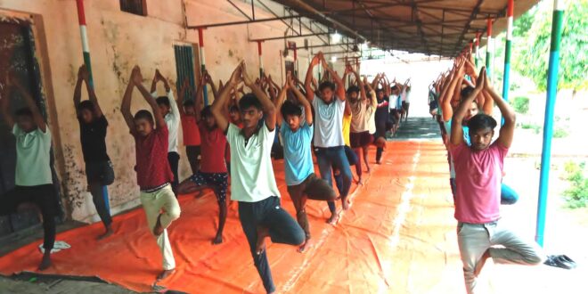 गाजीपुर। 11वें अंतरराष्ट्रीय योग दिवस पर जिला कारागार गाजीपुर में आयुष्मान आरोग्य मंदिर के तत्वाधान में योग शिविर का आयोजन किया गया, जिसकी थीम “एक पृथ्वी एक स्वास्थ्य” रहा, योग शिविर का शुभारम्भ गायत्री मंत्र से हुआ, योग प्रशिक्षक धीरज राय व सलमान हैदर ने कारागार में उपस्थित अधिकारीगण व बंदियों को योगाभ्यास में सूर्य नमस्कार, कपालभांति, अनुलोम-विलोम, भुजंगासन, प्राणायाम का अभ्यास कर आत्मिक शांति और नव ऊर्जा का अनुभव किया। कारागार के शिक्षाध्यापक अभय मौर्या ने बताया कि “शरीरमाद्यं खलु धर्मसाधनम्” (शरीर ही धर्म, कर्तव्य और साधना का पहला माध्यम है।) योग भारत की प्राचीन ऋषि परंपरा का वह प्रकाश है, जिसने मानवता को स्वस्थ तन और शांत मन का मार्ग दिखाया है, यह मात्र एक व्यायाम नहीं, बल्कि शरीर, मन और आत्मा को संतुलन में रखने की समग्र जीवनशैली है, इस मौके पर अधीक्षक आनन्द शुक्ला, जेलर सुनीलदत्त मिश्रा, डिप्टी जेलर राजेश कुमार, जेल वार्डर अजय गुप्ता, विवेक यादव, शिक्षाध्यापक धर्मेन्द्र श्रीवास्तव, अभय मौर्य उपस्थित रहे।