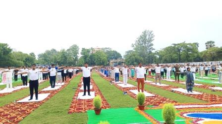 गाजीपुर। 11वां अन्तर्राष्ट्रीय विश्व योग दिवस थीम ‘‘एक पृथ्वी एक स्वास्थ्य के लिए योग‘‘ जनपद मे भव्य रूप मनाया गया। शनिवार को जनपद में उत्साह, उल्लास, एवं उमंग के साथ ग्यरहवां अंन्तर्राष्ट्रीय योग दिवस-2025 का भव्य कार्यक्रम आयोजित हुए। जिला मुख्यालय पर नेहरू स्टेडियम गोराबाजार गाजीपुर में बड़ी तादात में लोग शामिल हुए। इसी के साथ तहसील, ब्लाक, समस्त ग्राम पंचायतो व विभिन्न सरकारी व निजी संस्थानों में भी योग दिवस का आयोजन हुआ। ग्यारहवा अन्तर्राष्ट्रीय विश्व योग दिवस आयोजित कार्यक्रम का शुभारंभ मुख्य अतिथि राज्य सभा सांसद डा0 संगीता बलवंत, विशिष्ट मा0 अध्यक्ष नगर पालिका परिषद सरिता अग्रवाल, मण्डलायुक्त वाराणसी मण्डल वाराणसी एस. राजलिंगम, जिलाधिकारी अविनाश कुमार एवं मुख्य विकास अधिकारी संतोष कुमार वैश्य ने दीप प्रज्ज्वलित एंव धन्वतरि के चित्र पर माल्यापर्ण कर किया। तत्पश्चात मंच पर आसीन मुख्य अतिथि, विशिष्टि अतिथि एवं मण्डलायुक्त वाराणसी मण्डल वाराणसी का स्वागत सत्कार पुष्पगुच्छ देकर किया गया। मौके पर अपर जिलाधिकारी वि0रा0 दिनेश कुमार, पुलिस विभाग के अधिकारीगण, उपजिलाधिकारी सदर,समस्त जनपद स्तरीय विभागो के अधिकारी एवं कर्मचारी, छात्र/छात्राओ, प्रजापिता ब्रम्हकुमारी संस्था, हार्ट फुलनेस के अलावा भारी संख्या में उपस्थित लोगो ने अंन्तर्राष्ट्रीय योग दिवस में प्रतिभाग किया। इस अवसर पर मुख्य अतिथि डा0 संगीता बलवंत ने अपने सम्बोधन में कहा कि आज मे देश के यशश्वी प्रधानमंत्री जी की देश व पूरी दुनिया की तरफ से धन्यवाद देती हूं जिन्होने योग दिवस का प्रस्ताव संयुक्त राज्य महासभा मे रखा और उनका प्रस्ताव स्वीकृति मिलने के कारण आज हम पूरी दुनिया के लोग योग दिवस मना रहे है। उन्होने कहा कि ‘‘एक पृथ्वी एक स्वास्थ्य के लिए योग‘‘ थीम पर आयोजित 11 वां योग दिवस जिस प्रकार एक पृथ्वी है उसी प्रकार हमारा स्वास्थ्य भी एक ही ह,ै यदि हमे इस पृथ्वी को बचाना है तो हमे जागरूक होना होगा, हमारा तन, मन स्वस्थ रहे तो इसके लिए हमे योग करना होगा, जब हम स्वस्थ रहेगे तभी हम पृथ्वी को भी स्वस्थ रख सकेगे। उन्होने कहा कि योग भारतीय संस्कृति एवं परंपरा की एक अमूल्य देन है। योग भारत मे सदियो पुरानी परम्परा रही है जिसे हमे हमारे ऋषि मुनियांे ने आर्शिवाद के रूप में दिया है। आज जहां हम लोग योग दिवस के रूप में यहां उपस्थित हुए है उसी तरह मा0 प्रधानमंत्री जी विशाखापत्तनम में योग दिवस समारोह मे शामिल है। हमे चाहिए की योग को केवल एक दिन न करके प्रतिदिन योग को अपने दिनचर्या का हिस्सा बनाये क्योकि जब हम योग करेगे तभी निरोग रहेगे। जब हमारा तन, मन स्वस्थ रहेगा तभी देश भी स्वस्थ रहेगा। आज हमे यह संकल्प लेना है कि केवल 2