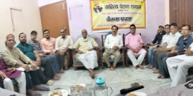 गाजीपुर। ‘साहित्य चेतना समाज’ के तत्वावधान में ‘चेतना -प्रवाह’ कार्यक्रम के अन्तर्गत शान्तिनिकेतन इण्टर कालेज बरही,गाजीपुर के प्रधानाचार्य प्रकाश चन्द्र दूबे के सरैयाँ स्थित आवास पर एक सरस काव्यगोष्ठी का आयोजन किया गया। गोष्ठी का शुभारम्भ कवि संजय पाण्डेय की वाणी-वंदना से हुआ। संस्था के संस्थापक अमरनाथ तिवारी ‘अमर’ ने कवियों एवं आगंतुक श्रोताओं का वाचिक स्वागत करते हुए चेतना-प्रवाह के उद्देश्यों पर प्रकाश डाला।तत्क्रम में संजय पाण्डेय एवं संस्था के संगठन सचिव प्रभाकर त्रिपाठी के अनुगायन की सांगीतिक प्रस्तुति ने उपस्थित समस्त जन को आनन्द-विभोर कर दिया।युवा कवि मनोज कुमार ने “मर्द को दर्द नहीं होता है, बहुत सुना है हमने/मगर बिना दर्द के कोई मर्द हो नहीं सकता” अपनी इन पंक्तियों के द्वारा कविता में पुरुष-विमर्ष को प्रतिष्ठित करते नज़र आए। युवा शायर गोपाल गौरव ने अपनी ग़ज़ल “आग ही आग होगी जिधर जाओगे/तुम चमन को जला कर किधर जाओगे” सुना कर खूब वाहवाही लूटी। इसी क्रम में आशुतोष श्रीवास्तव ने अपनी व्यंग्य- कविता “वो इंसान था या काग़ज़ का पुलिंदा/राशनकार्ड में मर गया/आधार में था ज़िन्दा” सुना कर सोचने पर मजबूर किया। युवा नवगीतकार डा. अक्षय पाण्डेय ने अपना नवगीत “धूल-धुआँ से भरे सफ़र में/आई है अम्मा/पहली-पहली बार शहर में/आई है अम्मा” की सस्वर प्रस्तुति ने श्रोताओं को तालियां बजाने के लिए विवश किया। संस्था के संस्थापक एवं वरिष्ठ व्यंग्यकार अमरनाथ तिवारी ने अपनी व्यंग्य-कविता “गली में नेताजी का शव पड़ा है/उनकी अन्त्येष्टि में सहयोग कीजिए/और दस रुपए का चन्दा दीजिए” खूब प्रशंसित हुई। संजय पाण्डेय ने अपना गीत “आ तुझे मैं प्यार करूं और तू कुछ ना बोले” ने प्रशंसा अर्जित किया। भोजपुरी एवं हिन्दी के गीतकार हरिशंकर पाण्डेय अपना भोजपुरी गीत “कहनी शुरू बाटे, बेटी बेटी-महतरिया/रोटिया बनीं कहिया हो/होत भिनसरवे घनघनाएले मोबाइल/काम-धाम छोड़ि के धियवो पराइल” प्रस्तुत कर ख़ूब तालियां बटोरी। इसी क्रम में कन्हैया गुप्त ‘विचारक’ ने अपनी कविता “पापा जी की परी है प्यारी/जिद्द अपनी मनवाती है/जिद्द करके पापा जी से/मोबाइल मंगवाती है” पर खूब वाहवाही लूटी। वीर रस के वरिष्ठ कवि दिनेशचन्द्र शर्मा ने “रात कब ढल गई सितारों से पूछो/लहरें कितना मचलतीं हैं किनारों से पूछो”सुनाकर श्रोताओं में जोश भर दिया।नगर के वरिष्ठ ग़ज़ल-गो कुमार नागेश की इन गीत-पंक्तियों “रातें जितनी देर रुकें पर वक्त सरकता रहता है/मन पत्थर हो जाए जितना/दिल तो धड़कता रहता है ” ने खूब प्रशंसा अर्जित की। नगर के वरिष्ठ महाकाव्यकार कामेश्वर द्विवेदी ने अपनी छान्दस कविता “प्रेम शब्द मात्र अब ग्रंथों में दिखाई देता/नहीं व्यवह