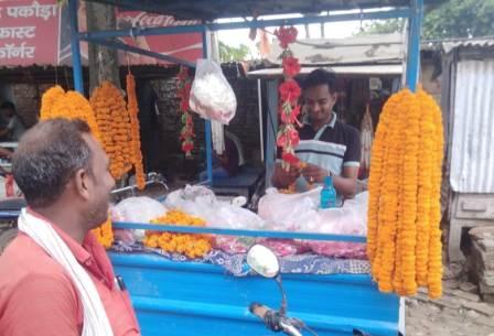 ग़ाज़ीपुर। श्रावण मास के पहले दिन नंदगंज बाजार में फूल की दुकान लगी हुई थी लेकिन फूलों की कीमते अधिक होने की वजह से दुकानों पर ग्राहक कम दिखाई दिए।उसमे गेंदा फूल से एक माला का मूल्य 70से 80रुपए है। उसके साथ ही बेला, मदार और बेलपत्र भी हुए महंगे हुए है । शिव पूजन में खास महत्व रखने वाले बेला और मदार के फूल भी महंगे हो गए हैं। वहीं बेलपत्र जो शिव को चढ़ाने के लिए अनिवार्य माना जाता है, उसकी कीमतों में भी उछाल आया है। नंदगंज बाजार के पश्चिम क्रासिंग के फूल विक्रेता धीरज माली ने बताया कि बारिश से गुलाब और अन्य फूलों की खेती बुरी तरह से प्रभावित हुई है। खेतों में पानी भरने से फूल झड़ गए और सप्लाई घट गई जिससे कीमतों में और उछाल आया है। महंगे होने की वजह से सावन के पहले दिन फूलों की बिक्री कम हुई।इसका एहीं कारण है कि फूलों के दाम अधिक होने की वजह से ग्राहक कम है।