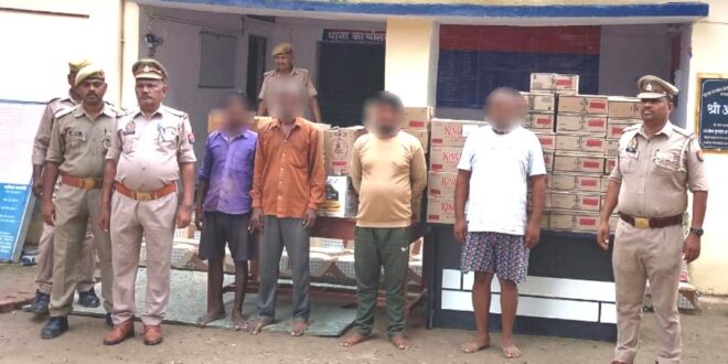 गाजीपुर। अपराध एवं अपराधियो के चलाए जा रहे अभियान के तहत टीम बनाकर सक्रिय अपराधियों संदिग्ध व्यक्तियों/वस्तुओं, अवैध शराब की गिरफ्तारी व बरामदगी के क्रम में दिनांक 13.07.2025 को थानाध्यक्ष नगसर मय हमराह के साथ चेकिंग के दौरान असांव रोड के पास वहद् ग्राम असांव से मुखबिर सूचना पर 04 नफर अभियुक्तों को दो ट्रैक्टर मय ट्रॉली गिरफ्तार किया गया। दोनों ट्रैक्टरों की तलाशी लेने पर ईंटो के बीच से 10 पेटी बियर(अंग्रेजी), 20 पेटी देशी(शराब), 55 पेटी अंग्रेजी शराब बरामद हुई। जिसकी अनुमानित कीमत लगभग 04 लाख 50 हजार है। गिरफ्तारी व बरामदगी के सम्बन्ध मे थाना स्थानीय पर मु0अ0सं0 37/2025 धारा 60/72 आबकारी अधिनियम पंजीकृत कर अग्रिम विधिक कार्यवाही की जा रही है।
