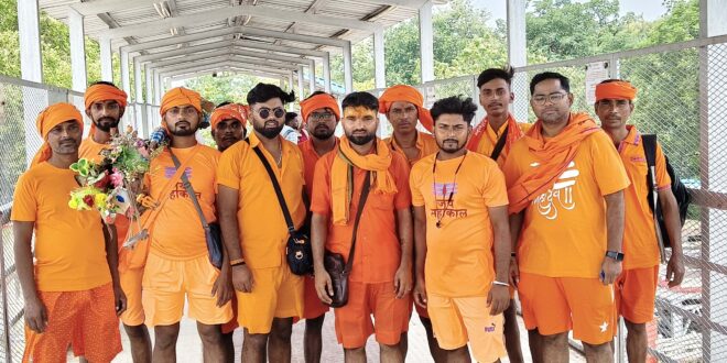 ग़ाज़ीपुर। गुरुवार को बाबा महाकाल कांवड़िया संघ नैसारा के उत्साही युवक पवन महादेव के नेतृत्व में गांव से कांवड़ियों का जत्था देवघर के लिए रवाना हुआ। देवघर जाने वाले कांवड़िया के सदस्य पहले गांव में स्थित हनुमान मंदिर पर दर्शन पूजन करके बोल बम का नारा लगाते हुए सुल्तानगंज के लिए रवाना हुए फिर वहां से जल लेकर पैदल बाबा बैद्यनाथ देवघर झारखंड के लिए जायेंगे। जत्थे में पवन,रिंकू,राजा,सूरज,कल्लू,दुर्गा, दमफल, सर्वजीत,दिनेश,संतोष,पंकज, ब्रिजेश व साजन है।