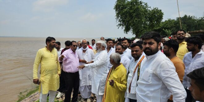 गाजीपुर। मंत्री उ0प्र0 सरकार स्वतंत्र देव सिंह का जनपद भ्रमण एंव बाढ एवं सिचाई सम्बन्धित जन चौपाल कार्यक्रम सम्पन्न हुआ। मंत्री जी ने जनपद गाजीपुर के ऐतिहासिक गांव शेरपुर के जलालपुर मौजा में बन रहे गंगा कटान को रोकने के लिए बोल्डर पैचिंक के कार्य एवं गंगा के बढ़ाव का स्थलीय निरीक्षण किया। उत्तर प्रदेश सरकार के मंत्री सिंचाई एवं जल संसाधन, बाढ नियंत्रण, परती भूमि विकास, लघु सिंचाई, नमामि गंगे एवं ग्रामीण जलापूर्ति विभाग उत्तर प्रदेश स्वतंत्र देव सिंह ने आज शेरपुर के जलालपुर मौजा में बन रहे गंगा कटान को रोकने के लिए बोल्डर पैचिंक कार्य स्थलीय निरीक्षण करते हुए सम्बन्धित अधिकारी को आवश्यक निर्देश दियंे। मा0 मंत्री जी ने नाव पर सवार होकर शेरपुर के निषाद बस्ती तक अवलोकन किया एवं मौके पर उपस्थित अधिशासी अभियंता एवं सम्बन्धित अधिकारियों को ऐतिहासिक गांव को बचाने के लिए सख्त निर्देश दिए। निरीक्षण से पूर्व मा0 मंत्री जी ने ‘‘एक पेड़ मॉ के नाम 2.0 वृक्षारोपण महाअभियान 2025 के अन्तर्गत गंगा तट पर रुद्राक्ष, बरगद एवं आम के पौधे का रोपण भी किया । चौपाल मे मंत्री जी ने वार्ता में बताया कि उत्तर प्रदेश सरकार पूरे प्रदेश में गंगा एवं अन्य नदियों में बाढ़ नियंत्रण के लिए बाढ़ नियंत्रण चौकिया बाढ़ शरणालय एवं अन्य विविध उपाय कर रही है जिससे आम जनमानस को गंगा एवं अन्य नदियों में बढ़ रहे जलस्तर से कठिनाइयों का सामना न करना पड़े। उन्होने अधिकारियों को इस सम्बन्ध सख्त हिदायत दी तथा कहा कि इसमे किसी स्तर की लापरवाही क्षम्य नही होगी। उन्होने अधिकारियेां को निर्देश दिया कि बाढ से प्रभावित होने वाले क्षेत्रो का पहले से ही भ्रमण करते हुए जहां भी जैसी स्थिति बने लोगो को राहत पहुचाने का कार्य किया जाये। मौके पर अपर जिलाधिकारी वि0रा0 दिनेश कुमार, अधिशासी अभियन्ता देवकली पम्प नहर कैनाल राजेन्द्र प्रसाद चौधरी, भाजपा नेता आदित्य सिंह, ग्राम प्रधान एवं आमजन उपस्थित थे।