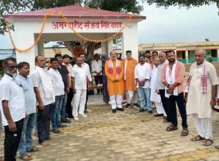 गाजीपुर। कारगिल दिवस के अवसर पर देवकली ब्लाक अंर्तगत धन ईपुर ग्राम मे अमर शहीद संजय यादव की प्रतिमा पर माल्यापर्ण करते हुए भाजपा के पूर्व प्रदेश महामंत्री रामतेज पाण्डेय ने कहा गाजीपुर जनपद अमर शहीदो की जन्म भूमि हॆ जिन्होने अपनी कुर्बानी देकर भारत मां की गरिमा पर आंच नही आने दिया तथा पूरे देश मे गाजीपुर का नाम रोशन किया।ऎसे वीर जवानों पर हमे गर्व हॆ। भाजपा के पूर्व जिला अध्यक्ष विजेन्द्र राय,मण्डल अध्यक्ष अखिलेश कुशवाहा,कमलेश पाण्डेय,विजय यादव,हरिहर पाण्डेय,लालता देवी,अमर शहीद की पत्नी राधिका यादव,भाई अजय यादव,पुत्र गॊरव यादव,तेरसू यादव,ग्राम प्रधान सुदर्शन यादव,सतेन्द्र सिंह,जिला पंचायत सदस्य अभय सिंह,धीरेन्द्र पाण्डेय,पूर्व विधायक शिवपूजन राम,गुरुप्रसाद गुप्ता,राजेश गुप्ता,सूर्यदेव राय,अंगद दूबे आदि लोगो ने माल्यापर्ण किया।