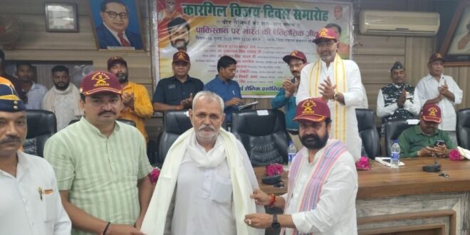 गाजीपुर। कारगिल विजय दिवस की 26 वें स्मृति दिवस पर आयोजित कार्यक्रम में पूर्व सैनिकों के बीच गाजीपुर पहुंचे उत्तर प्रदेश सरकार के राज्य मंत्री आयुष एवं औषधि प्रशासन दयाशंकर मिश्र दयालु ने कहा कि हमें गर्व है कि मैं गाजीपुर की धरती पर पैदा हुआ। पूरे भारत में गाजीपुर की जो पहचान है वह इन सैनिकों की शहादत की वजह से है या तो प्राचीन ऋषि मुनियों की धरती होने के कारण है। गाजीपुर में गहमर एक ऐसा गांव है जहां घर-घर से सैनिक है ।उन्होंने इस अवसर पर कारगिल शहीद की परिजनों को सम्मानित भी किया। इस अवसर पर उन्होंनेकहा कि कारगिल युद्ध जहां 2 महीने तक चला था वहीं प्रधानमंत्री नरेंद्र मोदी के नेतृत्व में रक्षा क्षेत्र में भारत में इतनी प्रगति कर ली है कि ऑपरेशन सिंदूर मात्र तीन दिन में ही समाप्त हो गया और भारत को विजयश्री मिली। उन्होंने कहा कि अब उत्तर प्रदेश बदल रहा है तथा लखनऊ से ब्रह्मोस मिसाइल तैयार होकर के पूरी दुनिया में अपना डंका बजा रही है । भारत सरकार ने 26000 करोड रुपए का रक्षा उपकरण का निर्यात किया है । उन्होंने आगे कहा कि कारगिल युद्ध में या किसी भी रूप में सेवा में अपनी शहादत देने वाले सैनिकों के परिजन हों या पूर्व सैनिक उनको कहीं भी किसी प्रकार की कोई समस्या नहीं होगी। उत्तर प्रदेश सरकार अब गांव-गांव में खेल का मैदान एवं स्टेडियम बनवा रही है जिससे आने वाली पीढ़ी स्वस्थ समृद्ध एवं भारत मां की रक्षा के लिए सदैव तत्पर रह सके। विधान परिषद सदस्य विशाल सिंह चंचल ने कहा कि भारत के वीर जवानों ने देश की आन-बान-शान के खिलाफ दुश्मनांे के दुस्साहस को सदैव मुंहतोड़ जवाब दिया है। उन्होंने अपना बलिदान देकर भी भारत की एकता और अखण्डता को अक्षुण्ण बनाये रखा है। कारगिल विजय दिवस हमें यही संदेश दे रहा है। जिन वीर सैनिकों ने देश को सुरक्षित रखने के लिए अपना बलिदान दिया है, उनकी प्रेरणा है कि हम एक रहें। उन्होने कहा कि राष्ट्र की एकता और अखण्डता सदैव बलिदान मांगती है। हमे भी इसमें अपना योगदान देना होगा। यदि आज हम चैन से सो पाते हैं, समृद्धि के मार्ग पर आगे बढ़ पाते हैं, विकास के नये आयामों का लाभ ले पाते हैं और आधुनिक सुविधाओं से लाभान्वित हो पाते हैं, तो इसका कारण यह है कि भारत के वीर जवान सम-विषम परिस्थितियों का सामना करते हुए देश की सीमाओं की रक्षा कर रहे हैं।