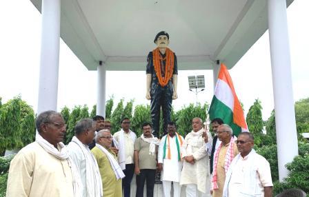 गाज़ीपुर। धरवा चट्टी नंदगंज के बगल में अमर शहीद शेषनाथ यादव जी की मूर्ति पर पुष्पांजलि अर्पित कर कारगिल विजय दिवस मनाया गया। कांग्रेस के जिला अध्यक्ष सुनील राम ने कहा कि यह दिन हम अपने देश के अमर शहीद वीर जवानों की याद में मनाते हैं जिन्होंने अपने प्राणों की परवाह न करते हुए कारगिल को दुश्मनों से आजाद कराया! उन्हें हम नमन करते हुए श्रद्धासुमन अर्पित करते हैं। कारगिल शहीद वीर जवानों की शहादत को हम कभी भुला नहीं सकते, गाजीपुर के अमर शहीद शेषनाथ सिंह यादव अमर शहीद कमलेश सिंह अमर शहीद इश्तियाक अहमद सहित दर्जनों जांबाज जवानों ने अपने जान की बाजी लगाकर इस देश को बचाने में अपने प्राणों की आहुति दी है। 26 जुलाई को कारगिल विजय दिवस के रूप में मानते हैं हम उन वीर शहीदों को शत-शत नमन करते हैं । एआईसीसी सदस्य रविकांत राय ने कहा कि जब जब भारत देश पर विदेशी आक्रमण हुए हैं हमारे देश के नौजवानों ने अपने जान की बाजी लगाकर इस देश की हिफाजत की है अपने सीने में गोली खाकर इस देश को आजादी दिलाई हम उन अमर शहीदों को नमन करते हैं। उक्त कार्यक्रम में जिला उपाध्यक्ष हामिद अली राम नगीना पांडे सतीश उपाध्याय पीसीसी सदस्य मुसाफिर बिंद शंभू सिंह कुशवाहा अवधेश भारतीय अच्छयबर बिंद शशिकांत श्रीवास्तव रुद्र प्रताप तिवारी पांचू बिंद अरुण कुमार पिंटू कश्यप रमेश बिंद भोला बिंद आदि लोगों ने पुष्पांजलि अर्पित की।