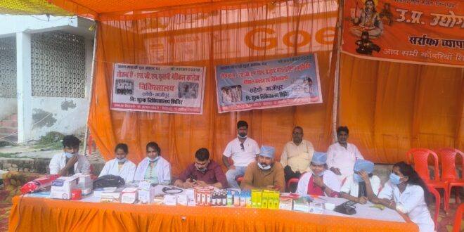 गाजीपुर। कांवरियों के सेवा हेतु उत्तर प्रदेश उद्योग व्यापार प्रतिनिधि मंडल व सराफा व्यापार मंडल गाजीपुर के संयुक्त तत्वाधान में गाजीपुर नगर के महुआ बाग तिराहे पर मेडिकल व सेवा कैंप लगाया गया जिसमें प्रमुख रूप से जिला अध्यक्ष श्री प्रकाश केशरी गुड्डू जी, प्रिन्स अग्रवाल,सराफा व्यापार मंडल के जिला अध्यक्ष अनुप वर्मा व जिला महामंत्रीसन्तोष वर्मा युवा जिला अध्यक्ष श्री सुधीर केसरी नगर अध्यक्ष सुप्रोतीम बागची महामंत्री आकाश दीप, कोषाध्यक्ष अब्दुल फैजान, गोपाल जी वर्मा राजा हुसैन, सोनू गुप्ता, सलीम अंसारी, कमरूजमा अंसारी, मेडिकल टीम सीएम पोस्टग्रेजुएट माइनॉरिटी आयुर्वैदिक मेडिकल कॉलेज एवं चिकित्सालय सहेड़ी गाजीपुर के सौजन्य से लगाया गया था जिसमें काफी संख्या में डॉक्टर द्वारा कांवरियों के सेवा के लिए हर प्रकार की मेडिकल सुविधा व दवाएं उपलब्ध थी, जिसका नेतृत्व शहाबुद्दीन ने की!