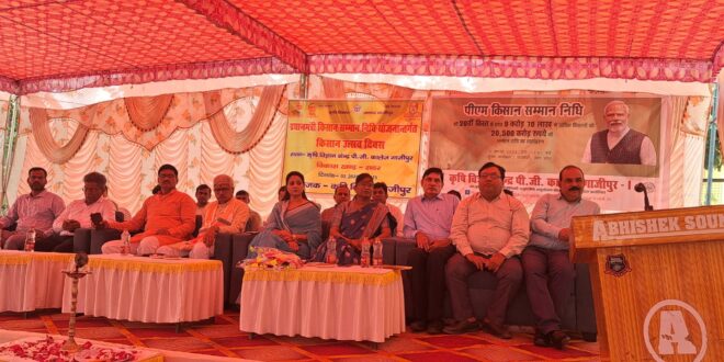 कृषि विज्ञान केन्द्र, पी0जी0 कालेज, गाजीपुर में ‘प्रधानमंत्री किसान सममान निधि’ की 20 वीं किस्त के तहत 9 करोड़ 70 लाख से अधिक किसानों को 20500 करोड़ रूपये की सम्मान राशि का हस्तान्तरण जीवन्त प्रसारण 02 अगस्त, 2025 को सेवापुरी, वाराणसी से माननीय प्रधानमंत्री नरेन्द्र मोदी जी के कर-कमलों द्वारा एवं यशस्वी मुख्यमंत्री आदित्यनाथ योगी जी तथा सूर्य प्रताप शाही कृषि मंत्री उ0प्र0 सरकार की गरिमामयी उपस्थिति में हस्तानान्तरित किया गया, जिसमें प्रधानमंत्री जी ने किसानों को सम्बोधित करते हुए कहा कि अब तक किसानों के खातों में 4 हजार करोड़ 75 लाख रूपये किसानों के खातों में हस्तानान्तरित किया जा चुका है, जिससे किसान आर्थिक रूप से मजबूत एवं समृद्ध हो रहा है। कृषि विज्ञान केन्द्र, पी0जी0 कालेज, गाजीपुर परिसर में जनपद की प्रथम महिला सपना सिंह अध्यक्ष जिला पंचायत, सरिता अग्रवाल अध्यक्ष नगर पालिका परिषद गाजीपुर, भाजपा के जिलाध्यक्ष ओमप्रकाश राय जी एवं महामंत्री प्रवीण कुमार सिंह, उप निदेशक कृषि विजय कुमार जी, कृषि विज्ञान केन्द्र के सीनियर साइंटिस्ट एण्ड हेड डाॅ0 विनोद कुमार सिंह ने भारत सरकार एवं उत्तर प्रदेश सरकार के सौजन्य से चलायी जा रही कृषि उद्यान, पशुपालन, मछली पालन, मधुमक्खी पालन, मशरूम उत्पादन एवं कृषि एलाइड तथा सेकेन्डरी एग्रीकल्चर के बारे में विस्तारपूर्वक चर्चा किया एवं उपस्थित किसानों, महिलाओं, बेजरोजगार युवकों, युवतियों को बताया कि कृषि से बड़ा उद्योग आज की तिथि में कोई नहीे है। लगभग 56 प्रतिशत लोग कृषि आधारित उद्योगों एवं खेती में लगे हुए हैं। निरन्तर उन्नतशील बीजों, तकनीकी ज्ञान एवं फसल प्रबंधन तथा मार्केटिंग के द्वारा अधिकतम उत्पादन प्राप्त कर रहे हैं। किसानों के सर्वांगीण विकास के लिए कृषि विज्ञान केन्द्र सदैव तकनीकी एवं व्यावहारिक रूप से मार्गदर्शन कर रहा है, जिसका लाभ किसान भाई बराबर प्राप्त कर रहे हैं। अन्त में उप निदेशक कृषि विजय कुमार ने कृषि विभाग से सम्बन्धित चलाई जा रही समस्त योजनाओं के बारे में विस्तारपूर्वक चर्चा किया। इस अवसर पर केन्द्र के डा0 डी0के0 सिंह, डा0 एस0के0 सिंह, डा0 ओमकार सिंह, डा0 रागिनी दूबे, ए0के0 बाजपेयी, आशुतोष सिंह, डा0 पी0के0 सिंह, सुनील कुमार, कपिलदेव शर्मा एवं लगभग 250 किसान उपस्थित थे।