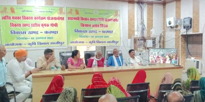 गाजीपुर। त्वरित मक्का विकास योजनान्तर्गत विकास खण्ड स्तरीय गोष्ठी कृषि विज्ञान केन्द्र पी०जी० कालेज गाजीपुर में आयोजित किया गया जिसके मुख्य अतिथि जिला पंचायत अध्यक्ष सपना सिंह एवं सरिता अग्रवाल अध्यक्ष नगर पालिका परिसद गाजीपुर द्वारा दीप प्रज्जवलित कर उद्घाटन किया गया गोष्ठी मे उपस्थित कृषि वैज्ञानिक डा० विनोद कुमार सिंह, डा० धर्मेन्द्र सिंह, डा० रागिनी दूवे, डा० ऑमकार सिंह मौजूद थे डा० ओमकार सिंह एवं पारस नाथ तकनीकी सहायक द्वारा त्वरित मक्का विकास योजना अन्तर्गत मक्के की खेती को बढावा देने हेतु किसानो को विस्तृत जानकारी दी गयी। उप कृषि निदेशक द्वारा बताया गया की जनपद में प्रजाति बायो 9544 का 50 एकड मे प्रदर्शन आयोजित किया जा रहा है। एवं सामान्य वितरण हेतु 6 कु० संकर मक्का जो सभी विकास खण्डों के कृषि निवेश केन्द्रो पर उपलब्ध है। उनके द्वारा यह भी बताया गया कि प्रदर्शन में शत प्रतिशत अनुदान अनुमन्य है. एवं सामान्य वितरण पर मूल्य का 50 प्रतिशत अनुमन्य है। किसानो को बीज लेकर के बुवाई करने हेतु आग्रह किया गया। प्रदेश सरकार द्वारा कृषि विभाग के अन्तर्गत संचालितश् राज्य सहायतित निःशुल्क तिलहन बीज मिनिकीट वितरण, प्रर्दशन एवं प्रसार कार्यक्रम के अन्तर्गत तोरिया बीज ( 2 किलो प्रति पैकेट) मिनिकीट निःशुल्क प्राप्त करने हेतु कृषि विभाग के पोर्टल पर पंजीकृत कृषकों के द्वारा ऑनलाईन आवेदन दिनांक-01.08.2025 से 15.08.2025 तक किया जायेगा जो पूरी तरह से पारदर्शी है। आनॅलाइन आवेदन करने वाले कृषकों को बीज मिनीकिट आवेदन अवधि में प्राप्त आवेदकों के मध्य लक्ष्य से अधिक आवेदन प्राप्त होने की दशा में ई-लॉटरी के माध्यम से लाभार्थियों का चयन किया जायेगा एक कृषक को केवल एक पैकेट मिनिकीट प्राप्त हो सकेगा चयनित कृषको को च्व्ै मशीन के माध्यम से राजकीय कृषि बीज भण्डारों से मिनिकीट का वितरण किया जायेगा। अतः इच्छुक कृषक निःशुल्क बीज मिनिकीट प्राप्त करने हेतु विभाग के पोर्टलagridarshan.up.gov.in पर अपना ऑनलाईन आवेदन करें।