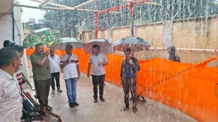 गाजीपुर। बढ़ते गंगा जलस्तर को देखते हुए जिलाधिकारी अविनाश कुमार के निर्देश पर मुख्य राजस्व अधिकारी आयुष चौधरी एवं अपर पुलिस अधीक्षक शहर ज्ञानेन्द्र प्रसाद द्वारा ददरी घाट का स्थलीय निरीक्षण किया। निरीक्षण के दौरान गंगा नदी के बढ़ते जल स्तर और पवित्र माह सावन का अंतिम सोमवार में उमड़ने वाली कांवड़ियों की संभावित भीड़ को देखते हुए श्रद्धालुओं/स्नानार्थियों के आवागमन के रास्तों व स्नान घाटों पर बैरिकेटिंग व सुविधा/सुरक्षा व्यवस्था सुनिश्चित कर ली गयी है। नहाने हेतु फव्वारे एवं 100 टोटीयों की व्यवस्था की गयी है। गंगा में कोई भी कावरियॉ स्नान न कर सके एवं कोई अप्रीय घटना न हो इसके लिए विशेष व्यवस्था की गयी है। निरीक्षण के दौरान उपजिलाधिकारी सदर मनोज पाठक, अधि0अधि0 नगर पालिका एवं अधिकारी कर्मचारी उपस्थित रहे।